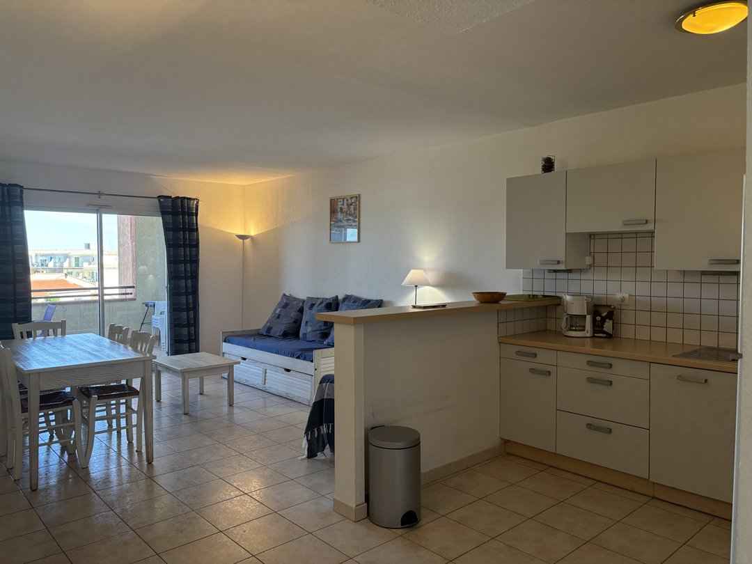 - Séjour/cuisine (Séjour : table (6 places), canapé convertible, télévision, table basse, baie vitrée.