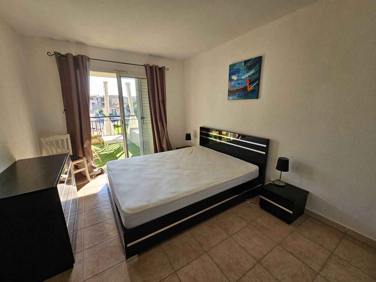 - Chambre 1 (Chambre 1 donnant sur la terrasse : lit double (160) , table de chevet, meuble de rangement )