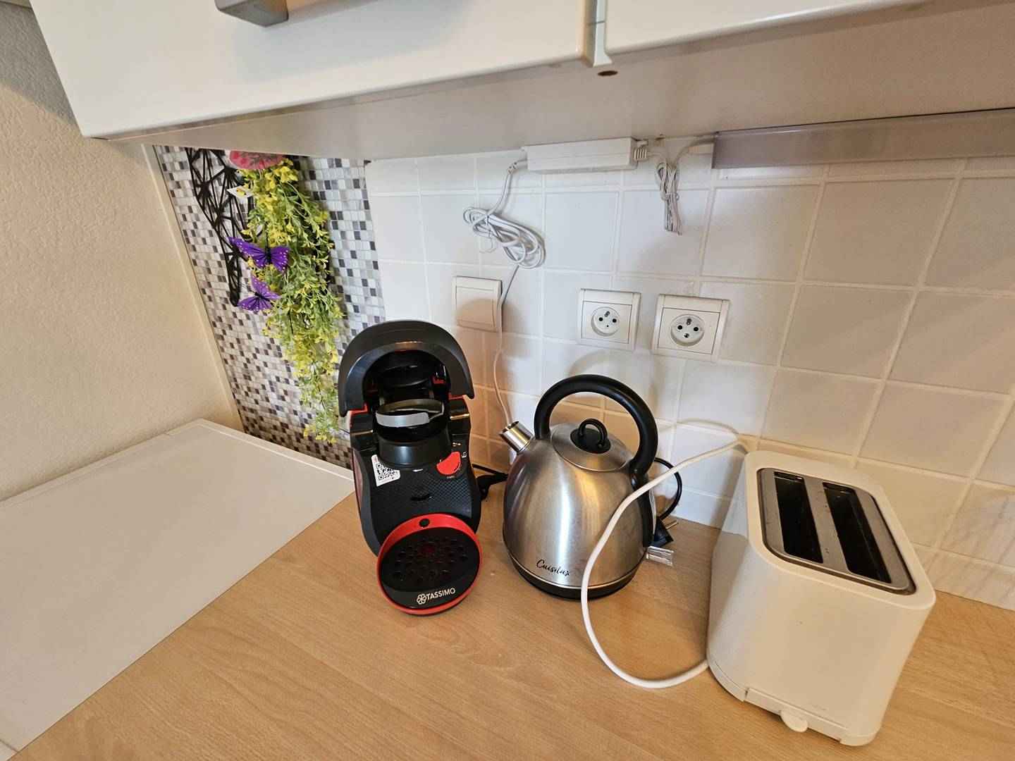Cuisine ouverte : réfrigérateur/congélateur , lave-linge, four , micro-onde, plaque-vitrocéramique , nombreux rangements, cafetières (filtre classique et tassimo), bouilloire, grille-pain...