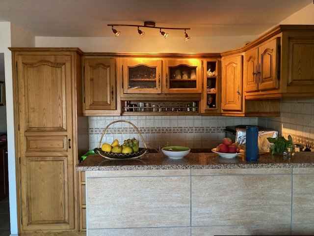 - Séjour/ cuisine (Séjour avec cuisine ouverte : gazinière (3 feux gaz + 1 électrique), four électrique, four micro-onde, cafetière nespresso, bouilloire, grille-pain, lave-vaisselle..