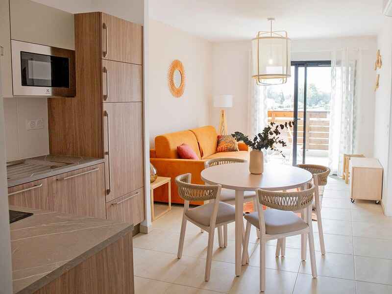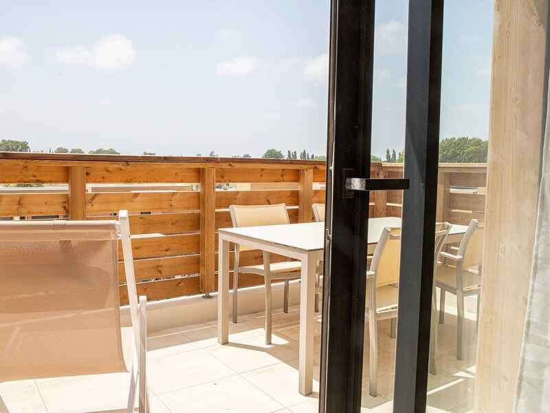 - A noter : Cet hébergement dispose d'un balcon aménagé (entre 9 m² et 10 m²) avec table à manger extérieure, chaises et transats.Hébergement ne permettant pas d'être au dernier étage et situé dans un bâtiment sans ascenseur.