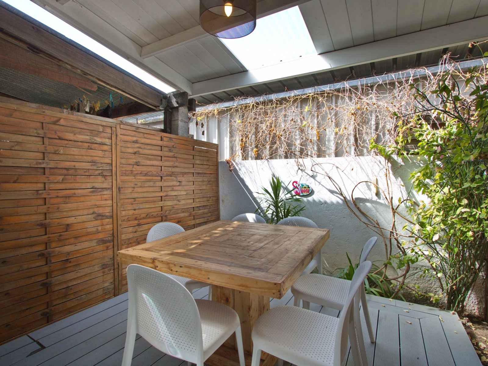 Draps et serviettes offerts ! • Entièrement équipée (Tv connectée, Wifi, vaisselle, four, …….) • Ménage inclus • Parking privé Au rez-de-chaussée : ✅ un espace salon équipé de 2 banquettes- lits simples, d'une TV écran plat et connexion internet ✅ une cuisine indépendante parfaitement équipée, avec toute la vaisselle, verrerie, et ustensiles de cuisine, grille pain, bouilloire, cafetière, micro-ondes, four, réfrigérateur, lave-linge. ✅ une salle de bains fonctionnelle avec douche, vasque et WC. Un sèche-cheveux est à votre disposition. ✅ à l’arrière de la maison, une jolie terrasse couverte en bois, aménagée pour les repas, avec plancha à disposition. *Les fêtes ne sont pas autorisées. A l’étage : ✅ 2 chambres climatisées avec lit double et literie de qualité, espace de rangement