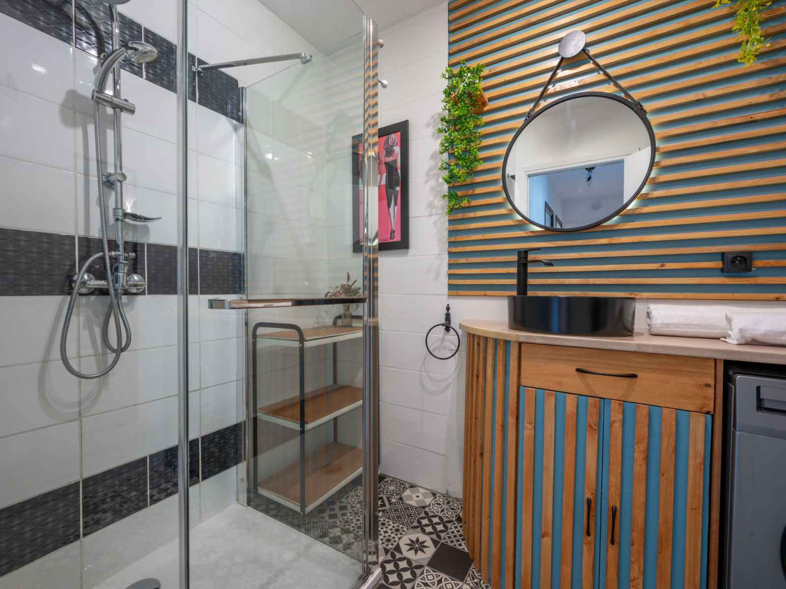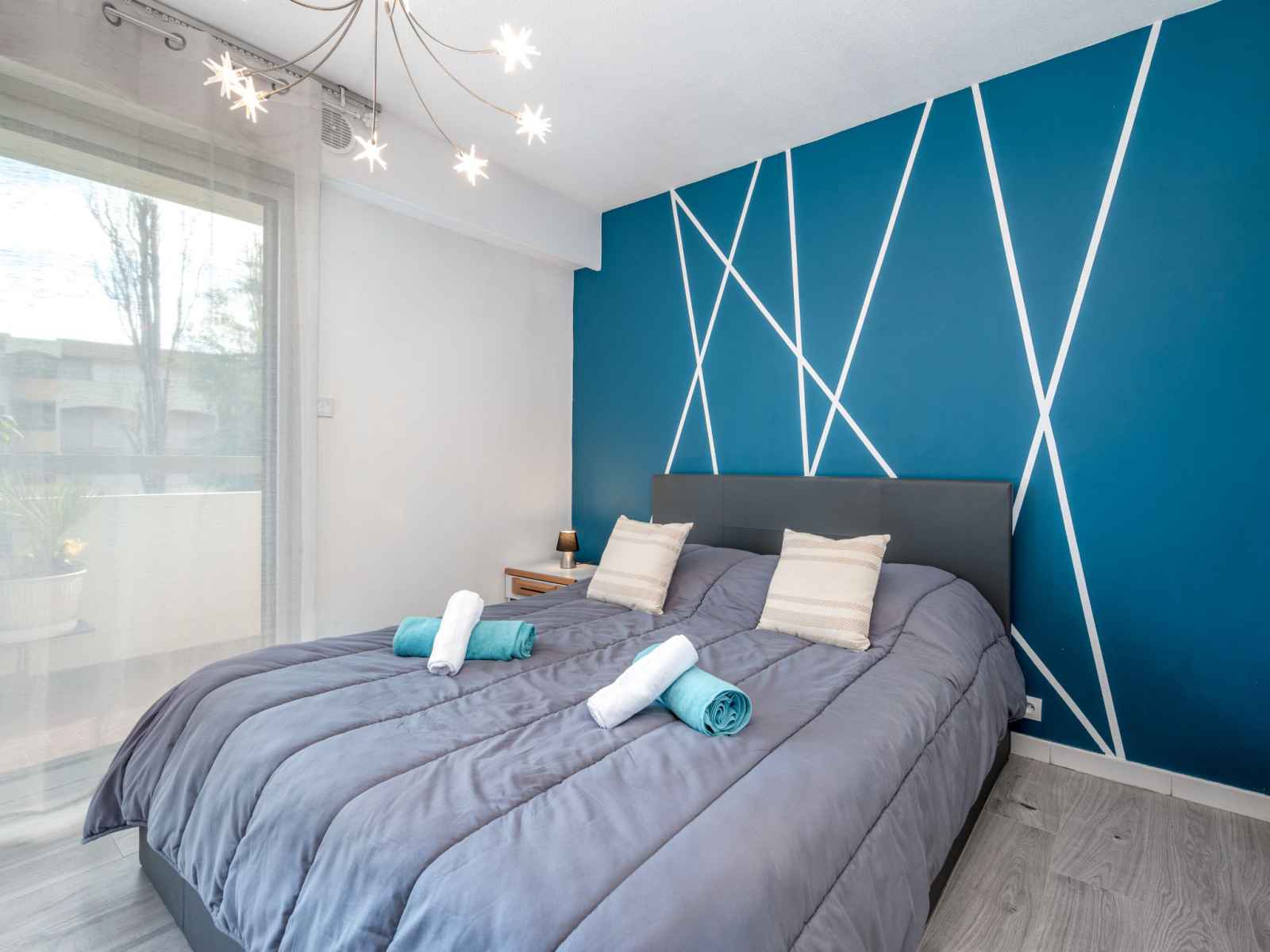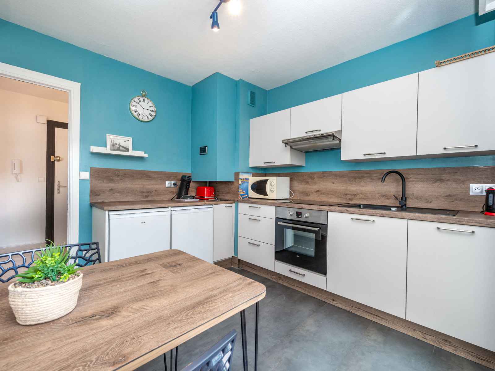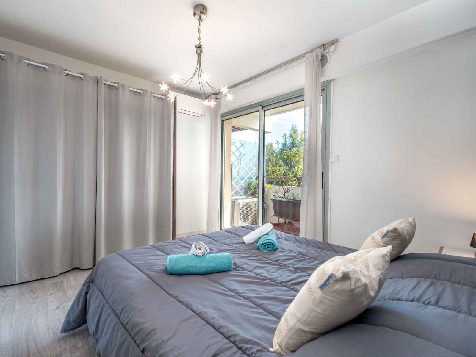 Apt 2 pièces 56 m2 au 1er étage. aménagement confortable et de bon goût: séjour/salle à manger avec tv (écran plat), air-conditionné. sortie sur la terrasse. 1 chambre avec 1 grand-lit (160 cm, longueur 200 cm), air-conditionné. sortie sur la terrasse. cuisine ouverte (four, 4 plaques à induction, grille-pain, bouilloire électrique,