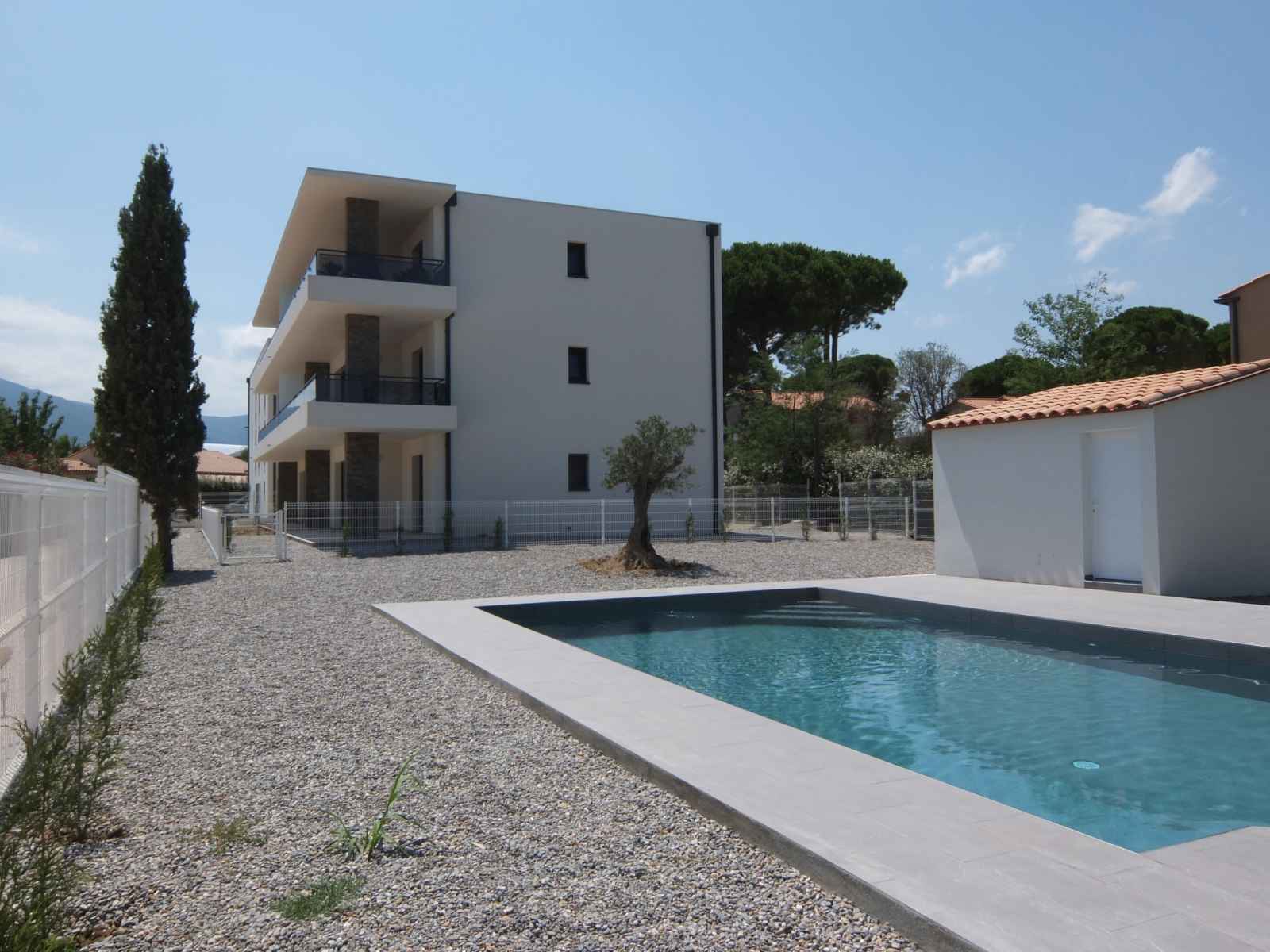 Petite résidence "le clos des alberes", de 2 étages, année de construction 2017. 16 appartements dans la résidence. À 4 km de la mer, à 4 km de la plage. en commun: piscine rectangulaire (9 x 5 m, profondeur 150 - 150 cm, disponibilité saisonnière: 15.jun. - 30.sep.). infrastructures de la résidence: ascenseur. magasin d'alimentation 400