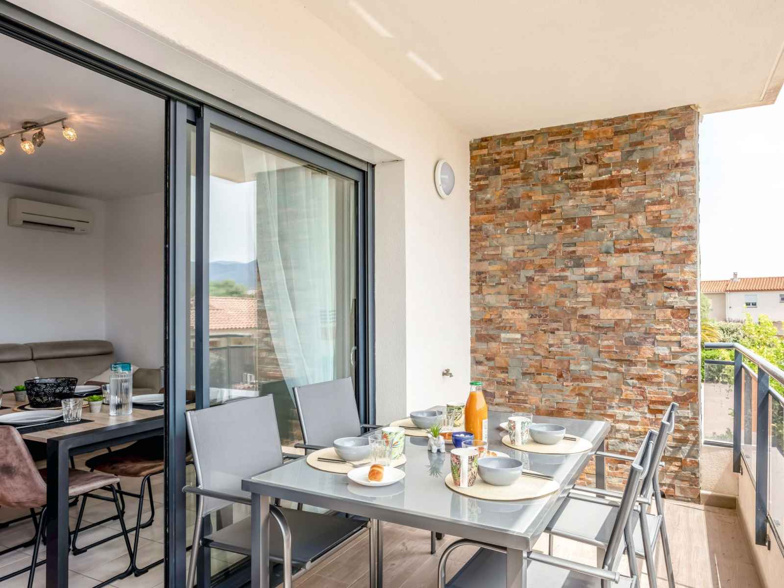 cafetière électrique). WC séparé. Air-conditionné. Terrasse 8 m2, couverte. Meubles de terrasse. Vue sur les montagnes. A disposition: lave-linge, fer à repasser. Internet (Connexion WIFI, en sus). Place de parking No 2. Veuillez noter: logement non-fumeur. Détecteur de fumée. Annonce d'un particulier (art 155, IV du CGI).