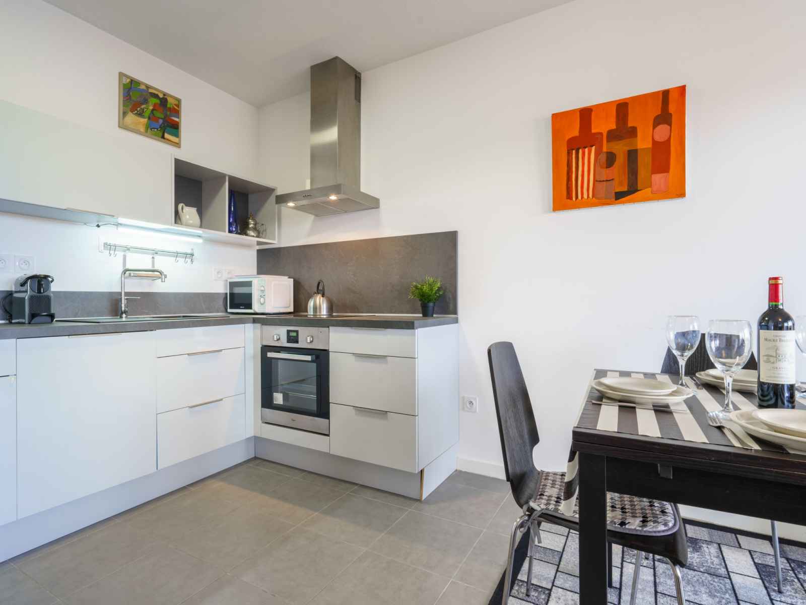 Apt 2 pièces 46 m2 au 1er étage. clair, aménagement confortable et agréable: séjour avec 1 divan-lit double (140 cm, longueur 190 cm), tv (écran plat). sortie sur la terrasse. 1 chambre avec 1 grand-lit (140 cm, longueur 190 cm). sortie sur la terrasse. coin cuisine (four, lave-vaisselle, 3 plaques à induction, grille-pain, bouilloire