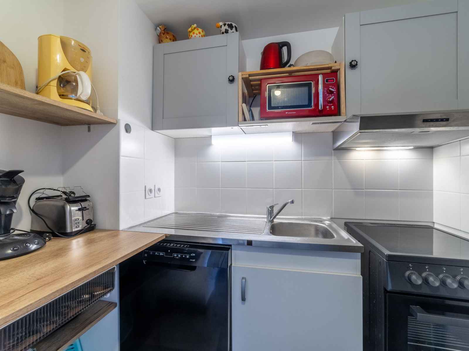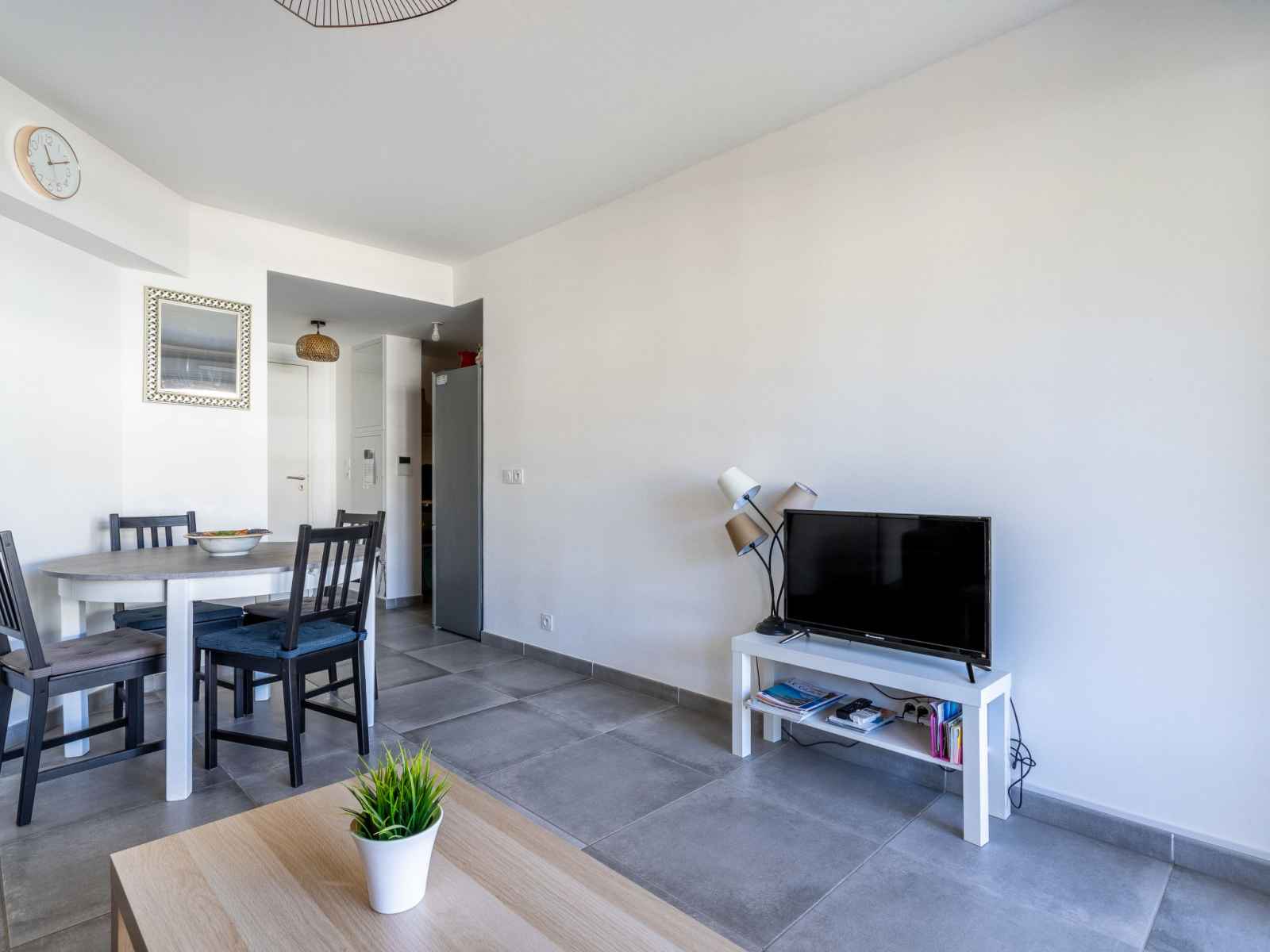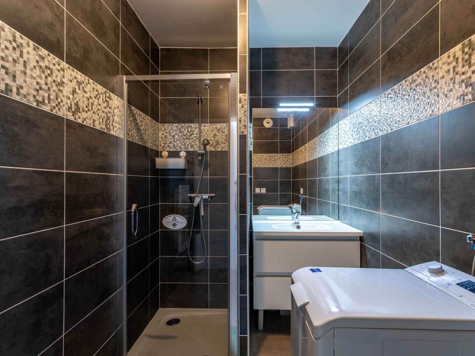 bouilloire électrique, congélateur, cafetière électrique). Douche/WC. Chauffage électrique. Terrasse 15 m2. Meubles de terrasse. A disposition: lave-linge, sèche-cheveux. Internet (Connexion WIFI, en sus). Garage No 5. Veuillez noter: TV seulement FR. Détecteur de fumée. 830190008643G