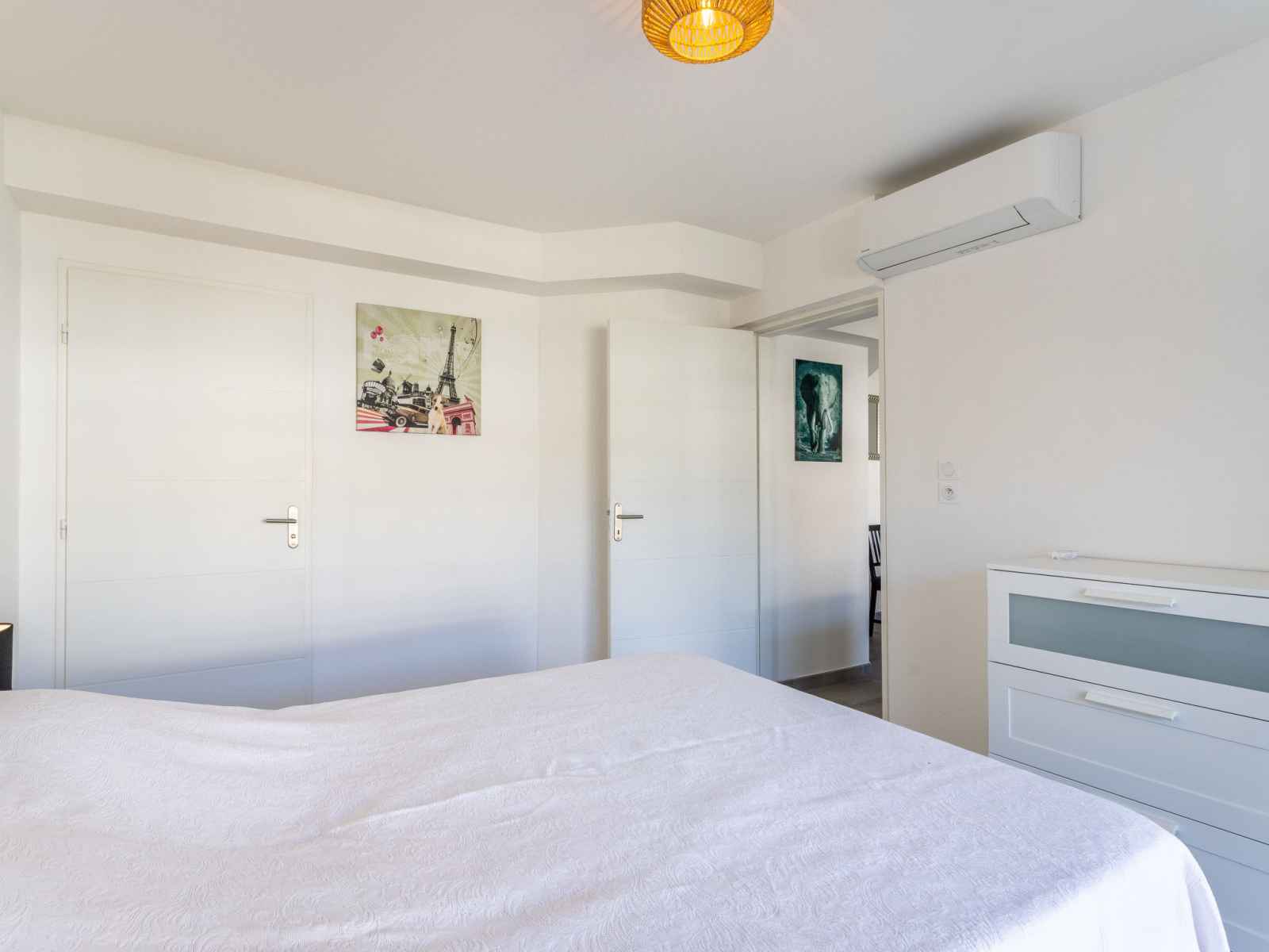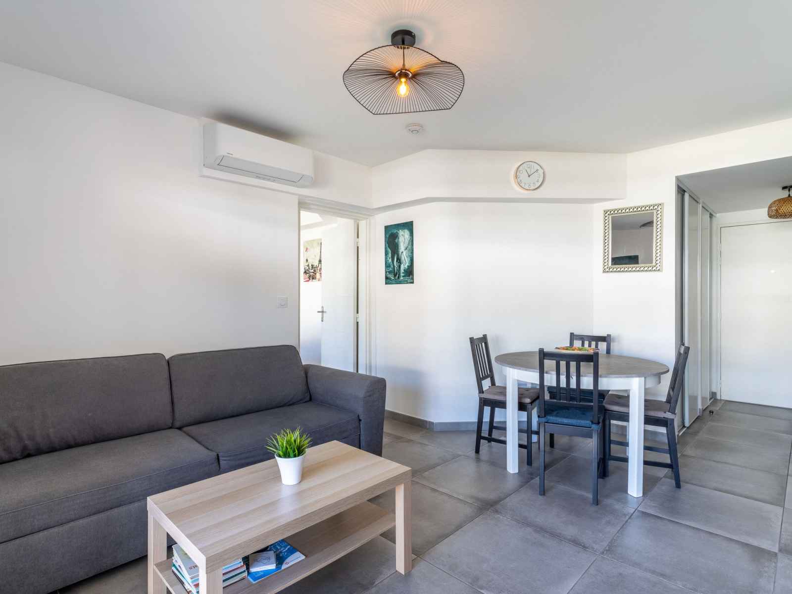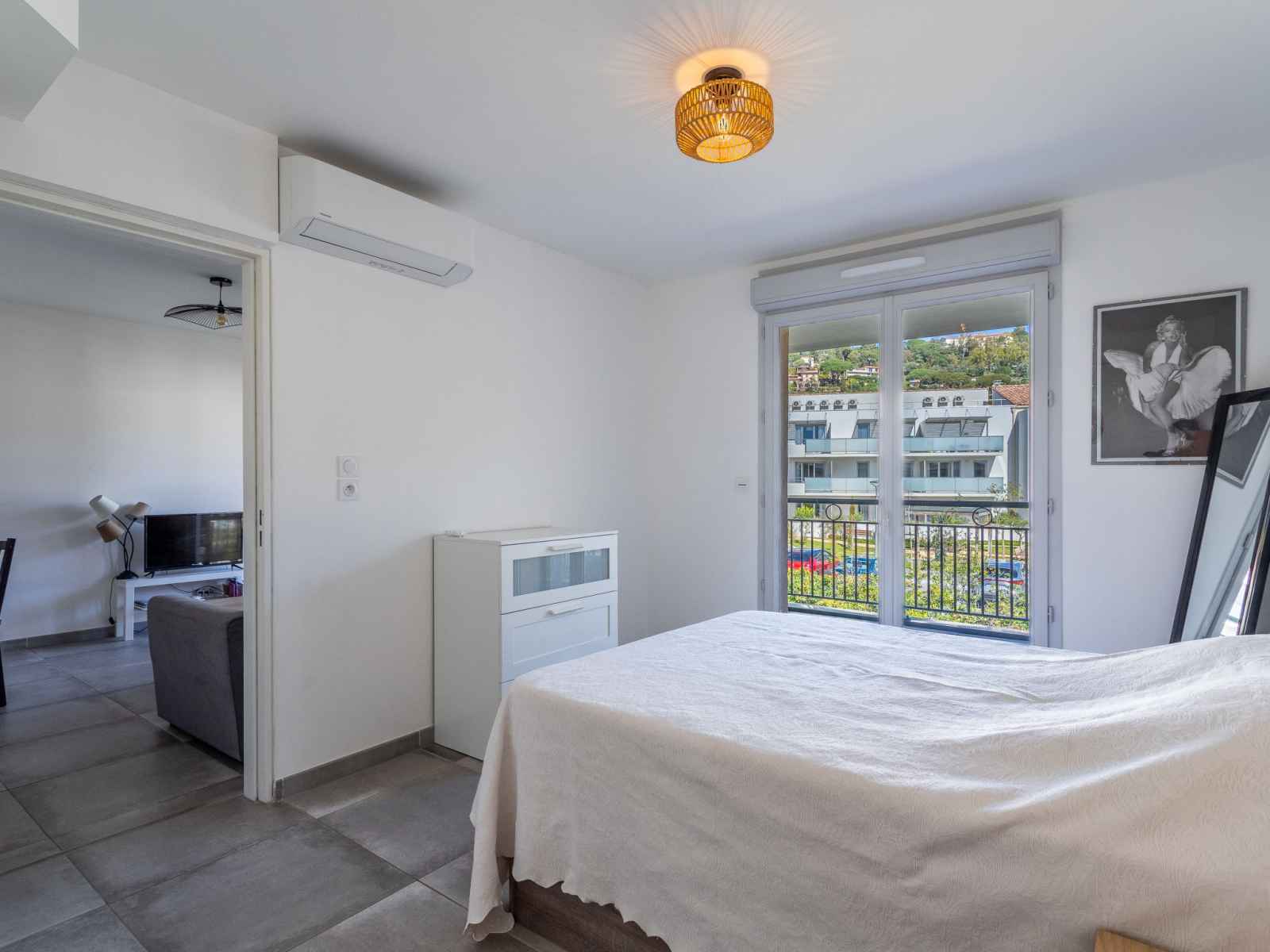 Apt 2 pièces 38 m2 au 2ème étage. aménagement confortable et agréable: séjour/salle à manger avec 1 divan-lit double (1 x 130 cm, longueur 190 cm), tv (écran plat), air-conditionné. sortie sur la terrasse. 1 chambre avec 1 grand-lit (140 cm, longueur 190 cm). coin cuisine (four, lave-vaisselle, 4 plaques vitrocéramiques, grille-pain,