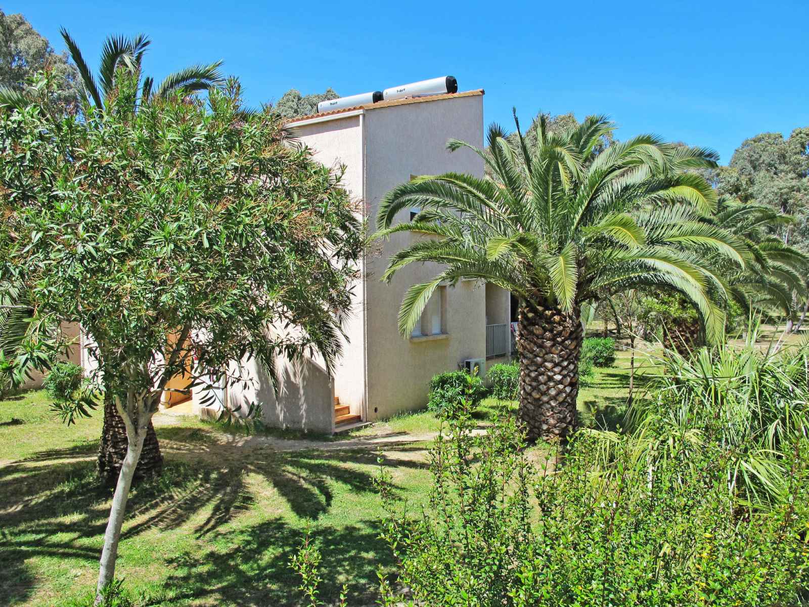 arbres, jardin naturel, champ, piscine chauffée, cloturée (15 x 7 m, disponibilité saisonnière: 01.avr. - 31.oct.). douche extérieure, ping-pong, terrain de pétanque, terrasse. infrastructures de la résidence: réception, bar avec tv, connexion wifi (en sus). ping-pong, lave-linge (en commun, en sus). service boulangerie. place de parking sur le terrain. supermarché 600 m, arrêt de bus 1.8 km, gare ferroviaire 600 m, plage de sable "calvi" 200 m. tennis 150 m. veuillez noter: complexe de vacances sans voiture, voiture recommandée. la photo ne montre qu’un exemple de location de vacances.