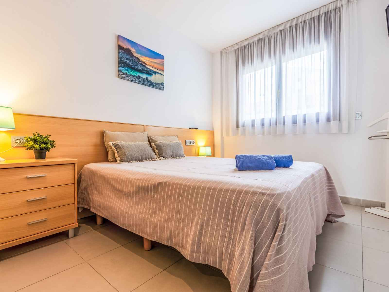 "voramar 4", apt 2 pièces 50 m2. aménagement fonctionnel et confortable: séjour/salle à manger avec 1 divan-lit double (150 cm, longueur 190 cm), télévision numérique, air-conditionné et chauffage à air chaud. sortie sur la loggia. 1 chambre avec 1 grand-lit (135 cm, longueur 190 cm), air-conditionné et chauffage à air chaud. cuisine