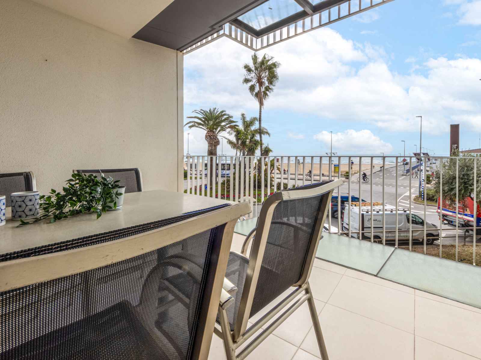 ouverte (four, lave-vaisselle, 3 plaques vitrocéramiques, grille-pain, bouilloire électrique, micro-ondes, cafetière électrique, Capsules pour machine à café (Nespresso)) avec table pour les repas, chauffe eau (100 litres). Douche/WC. Chauffage pas dans toutes les pièces. Balcon. Mobilier de balcon. Très belle vue panoramique sur la mer. A disposition: lave-linge, fer à repasser, chaise haute pour enfant, lit bébé, sèche-cheveux. Adapté(e) aux familles. Maximum 1 animal/ chien autorisé. HUTT-008871 // Reg. Nr.: ESFCTU00004303100042051700000000000000HUTT-009972-668