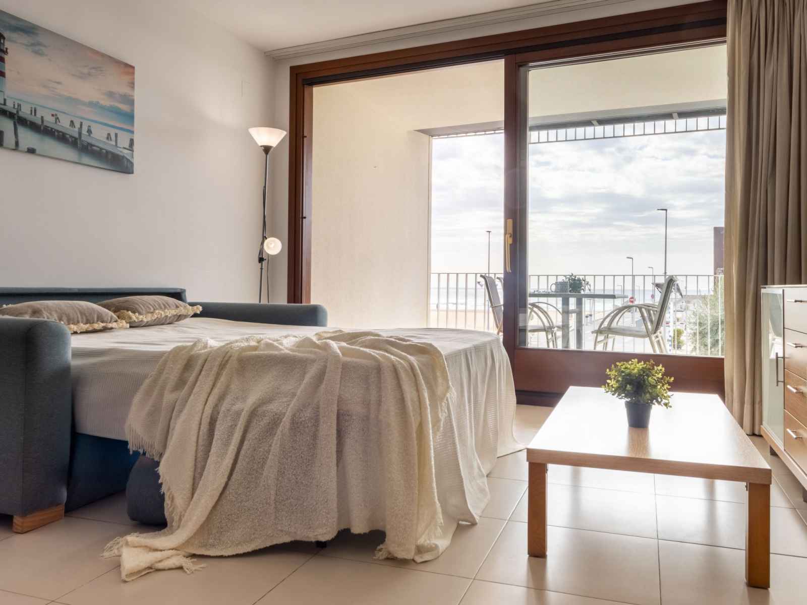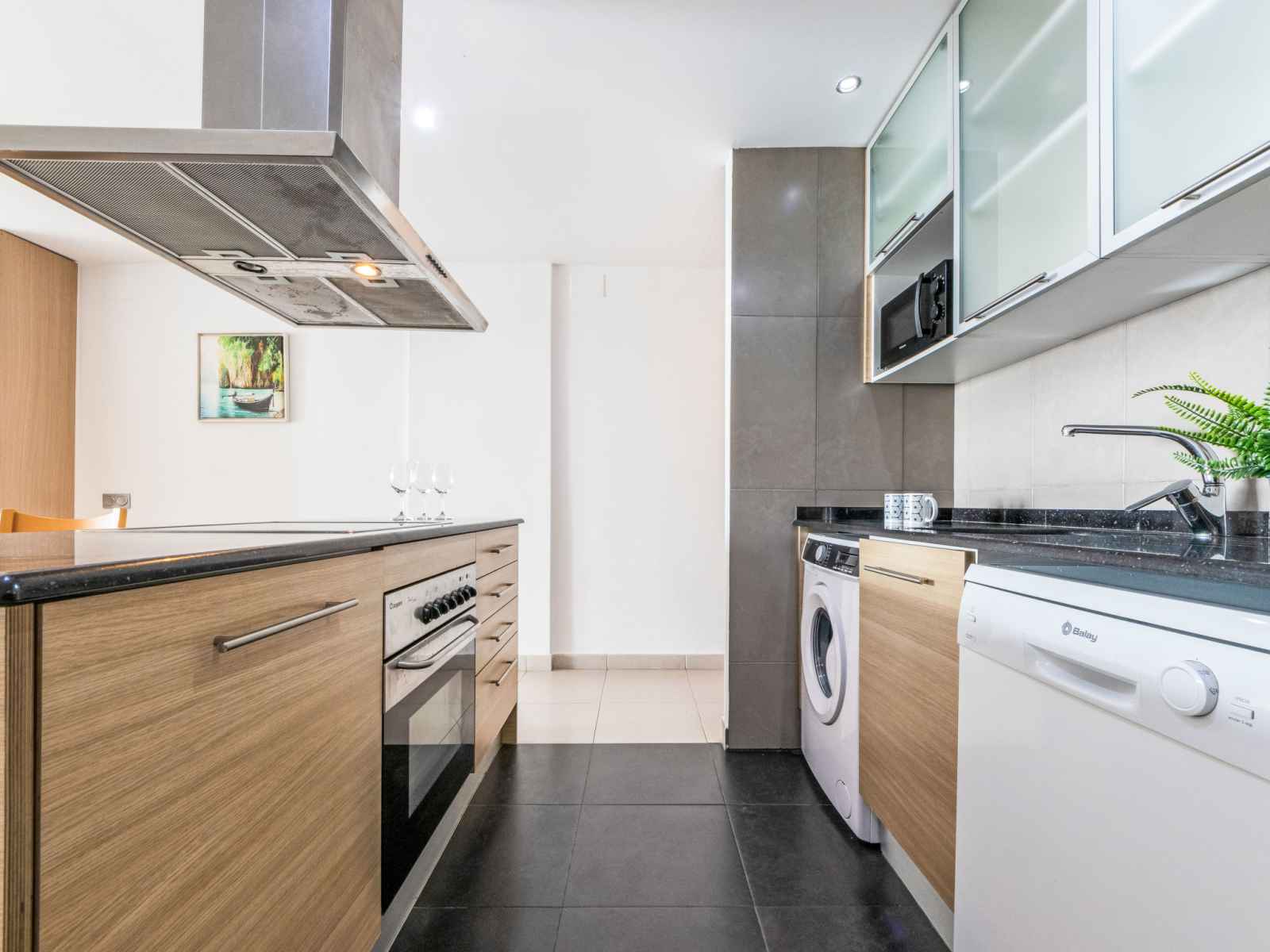 "voramar 1", apt 2 pièces 50 m2. aménagement fonctionnel et confortable: séjour/salle à manger avec 1 divan-lit double (150 cm, longueur 190 cm), télévision numérique, air-conditionné et chauffage à air chaud. sortie sur la loggia. 1 chambre avec 1 grand-lit (135 cm, longueur 190 cm), air-conditionné et chauffage à air chaud. cuisine