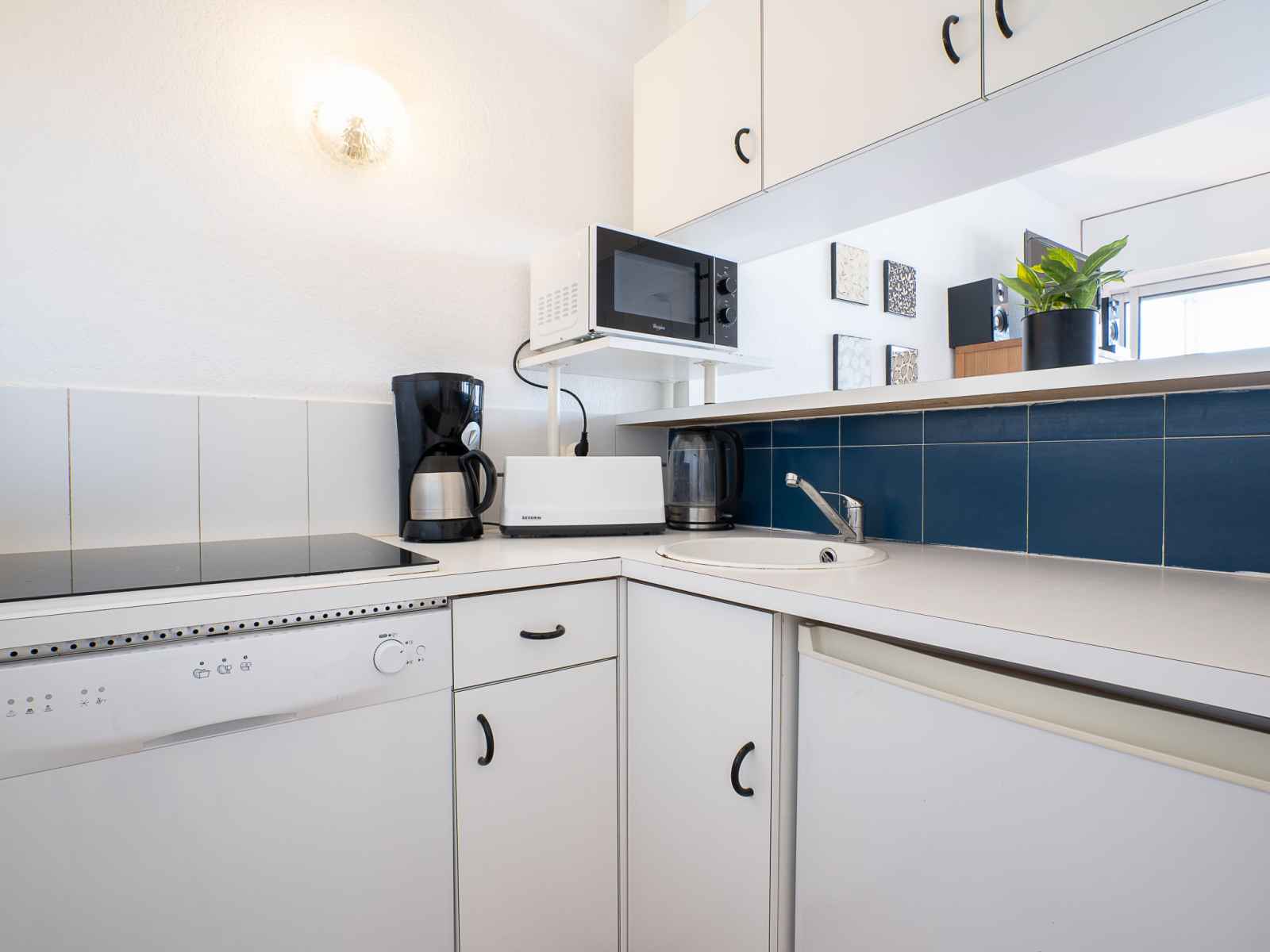 induction, grille-pain, micro-ondes, cafetière électrique) avec ventilateur. Salle de bains, WC séparé. Meubles de terrasse, loggia. Très belle vue sur la mer. A disposition: lave-linge, fer à repasser. Internet (Connexion WIFI, en sus). Veuillez noter: détecteur de fumée. Au lieu d'une chambre fermée, des espaces de couchage sont situés dans une zone ouverte (galerie, alcôve...). 0370559133G