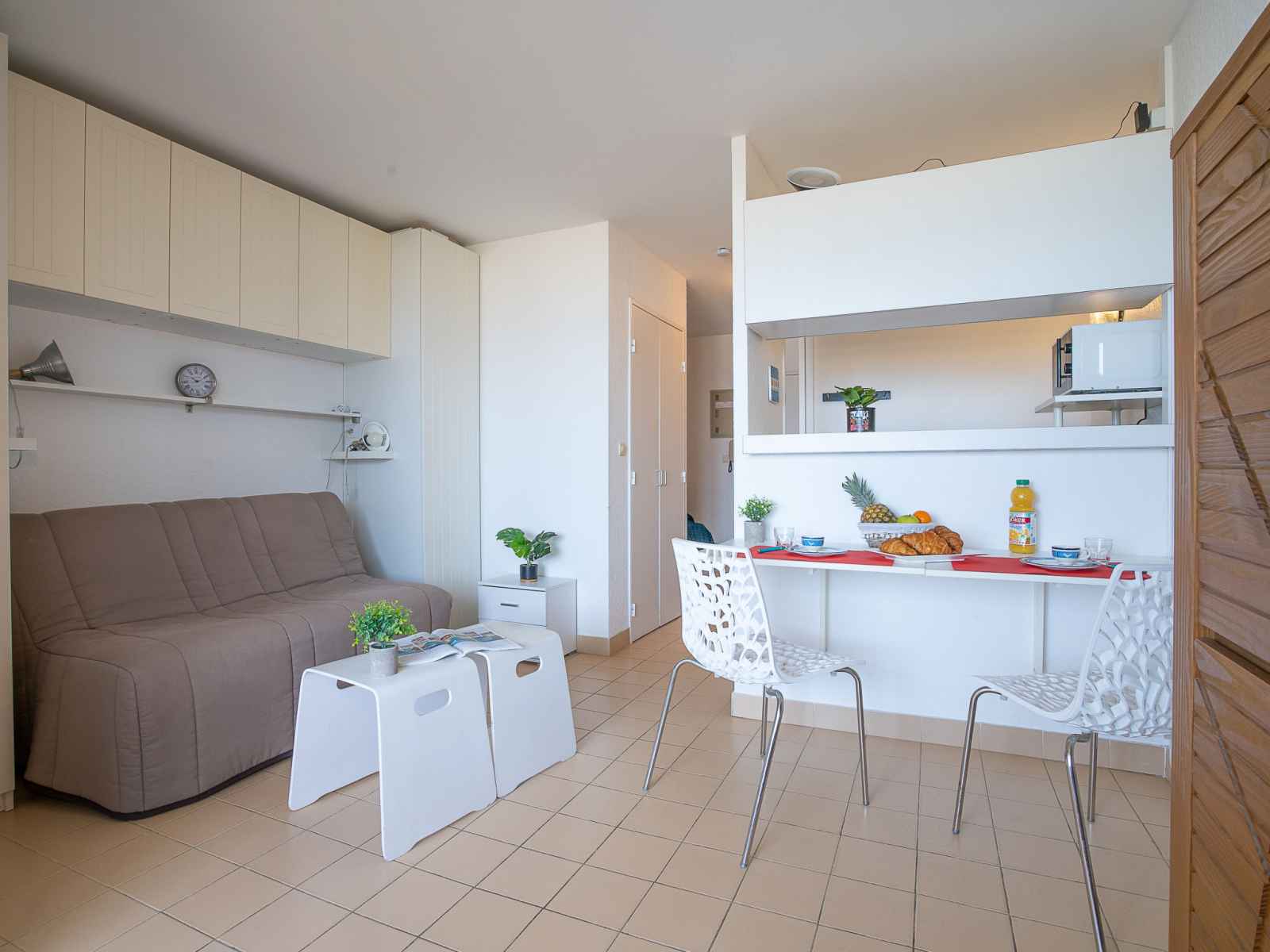 Apt 2 pièces 29 m2 au 3ème étage. aménagement confortable et agréable: séjour/salle à manger avec 1 divan-lit double (140 cm, longueur 190 cm), tv, écran plat, dvd et ventilateur. sortie sur la loggia. entrée avec 1 lit (90 cm, longueur 190 cm). cabine avec 1 divan-lit (120 cm, longueur 190 cm). coin cuisine (mini-four, four, 4 plaques à