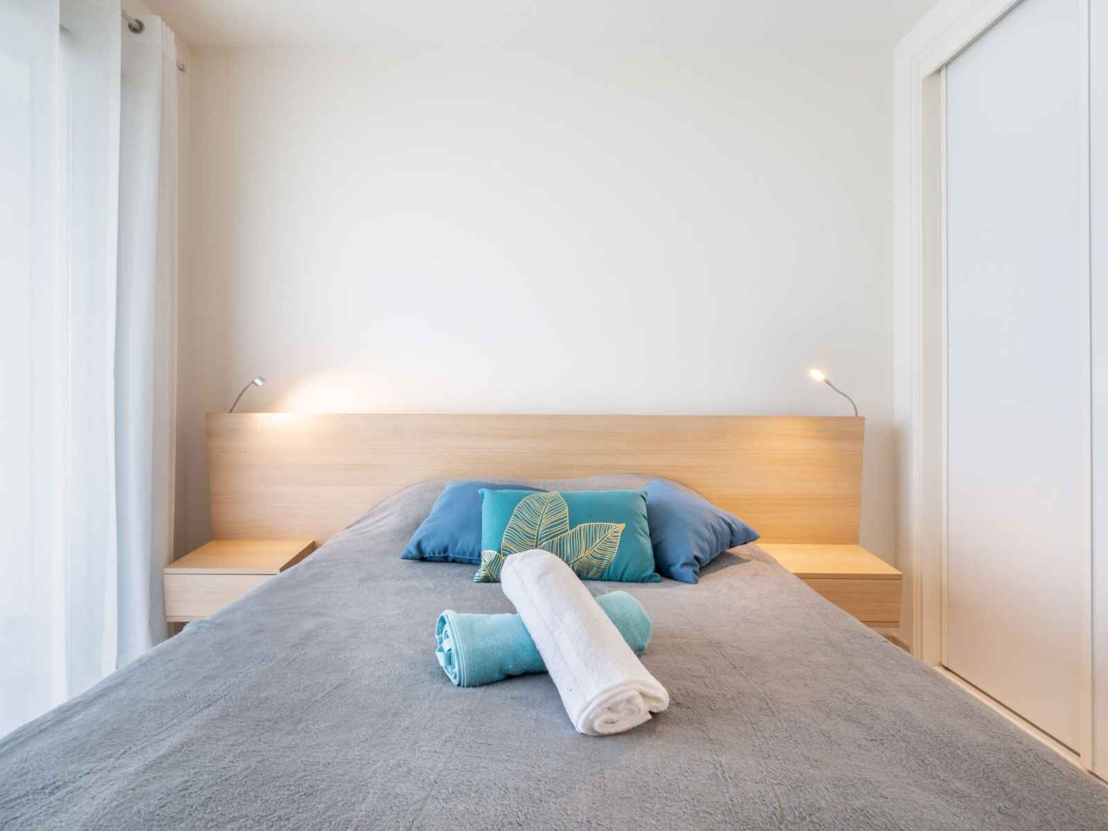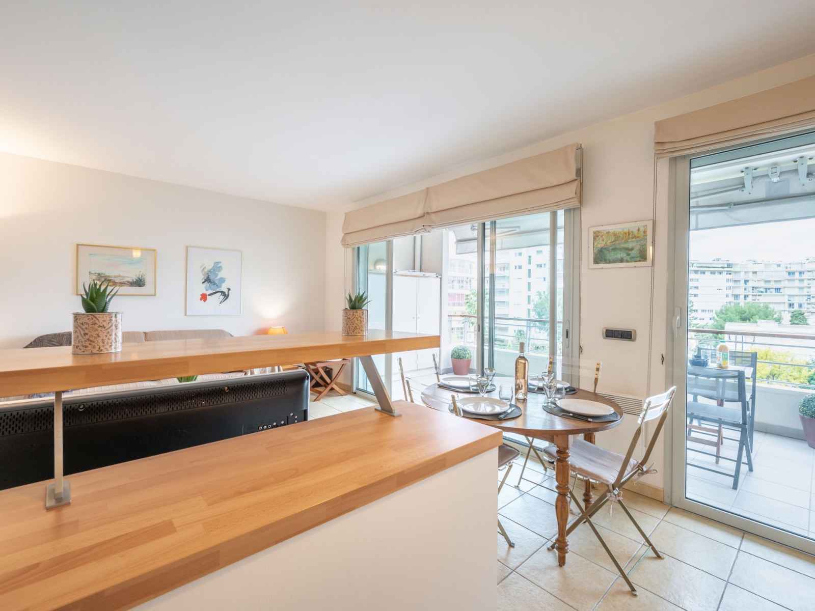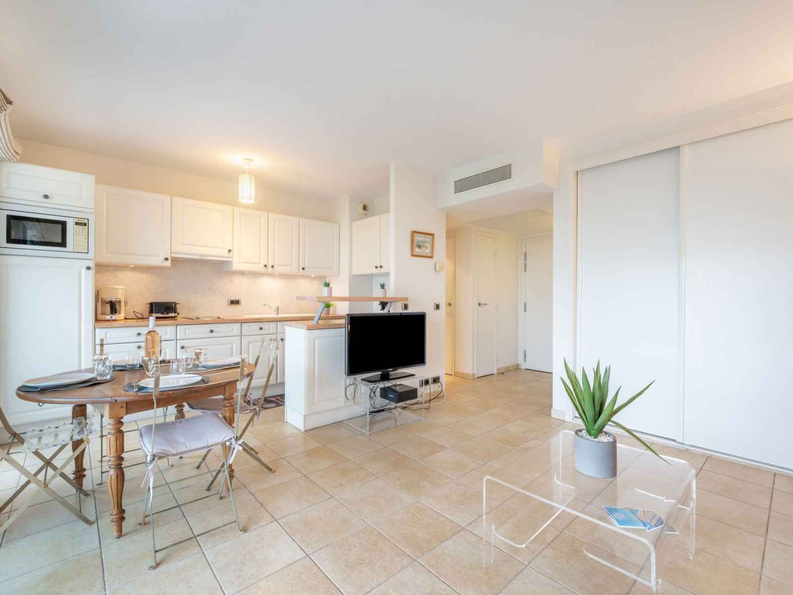 Apt 2 pièces 49 m2 au 4ème étage. aménagement très confortable et agréable: séjour/salle à manger avec 1 divan-lit double (1 x 140 cm, longueur 190 cm), tv et air-conditionné. sortie sur la terrasse. 1 chambre avec 1 grand-lit (140 cm, longueur 190 cm), tv et air-conditionné. sortie sur la terrasse. cuisine ouverte (lave-vaisselle, 2