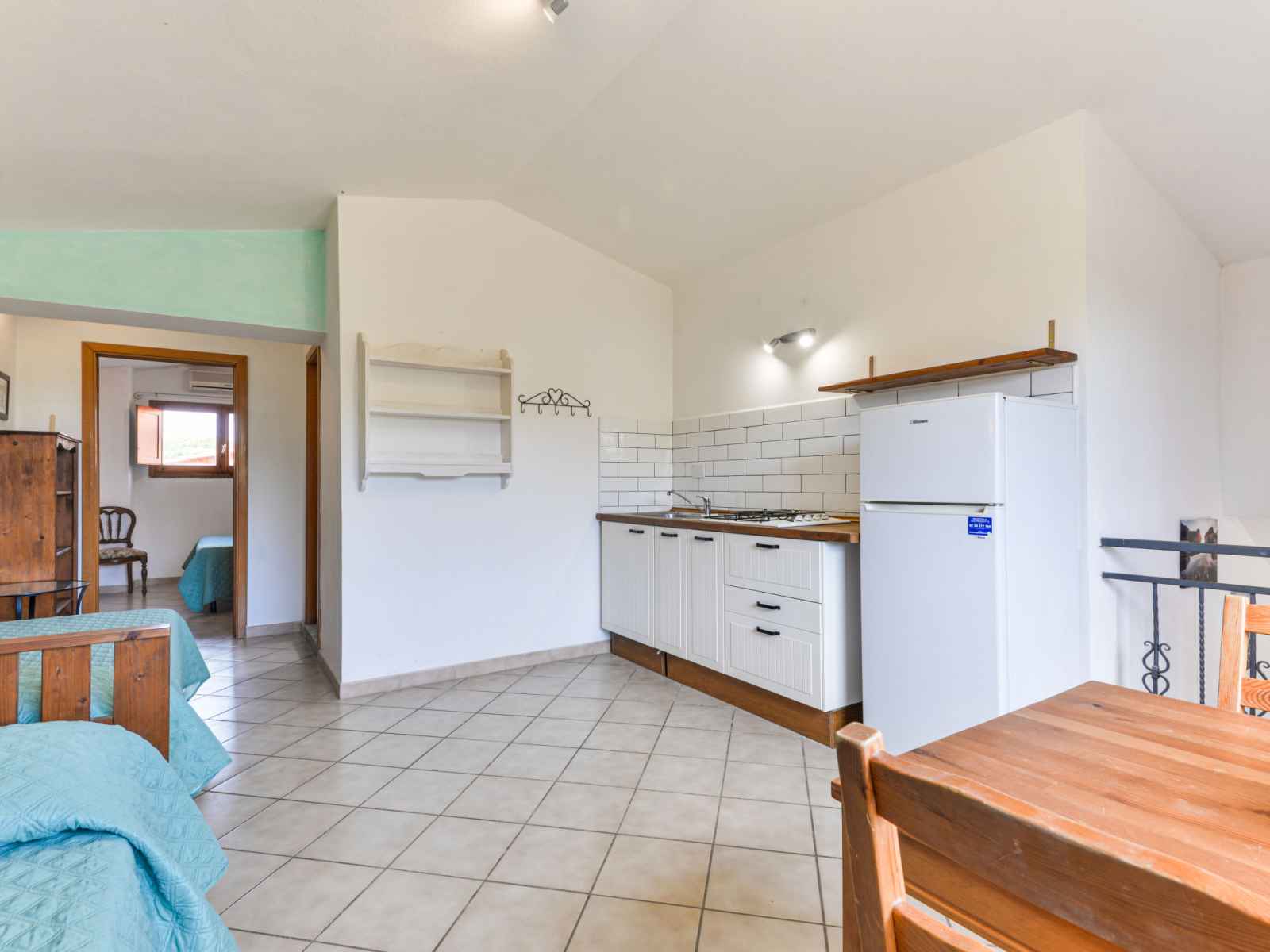 Apt 2 pièces 36 m2 au 1er étage. aménagement fonctionnel: séjour/chambre à coucher avec 2 lits et table pour les repas. 1 chambre double avec air-conditionné. coin cuisine (4 feux, congélateur, cafetière électrique, capsules pour machine à café (nespresso) (non incluses)). douche/wc. chauffage, air-conditionné. terrasse 18 m2. meubles