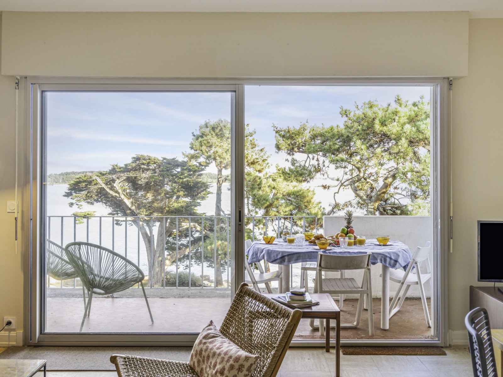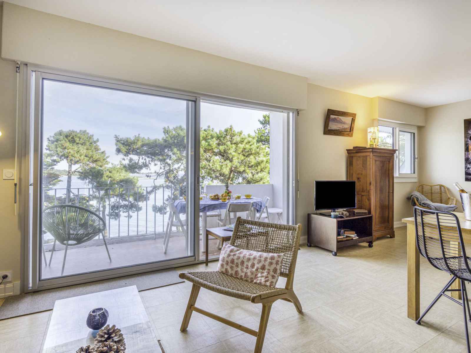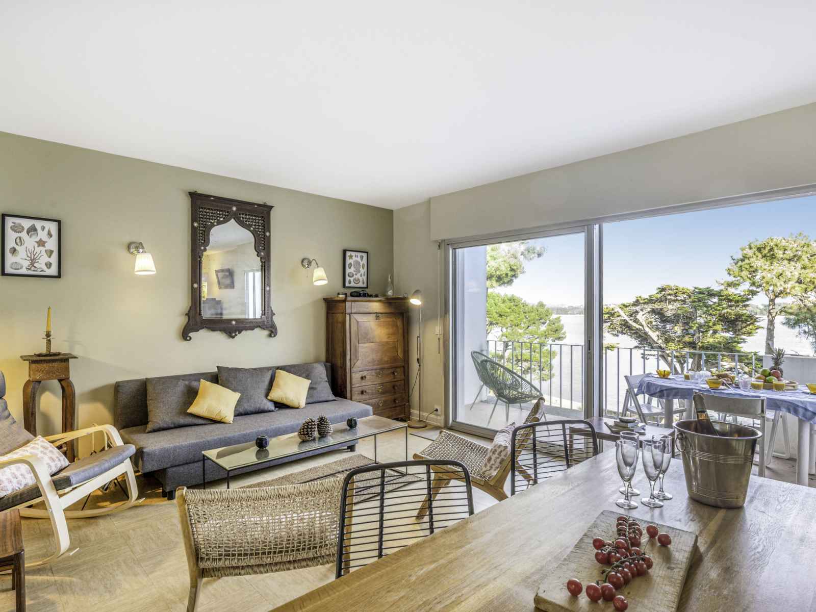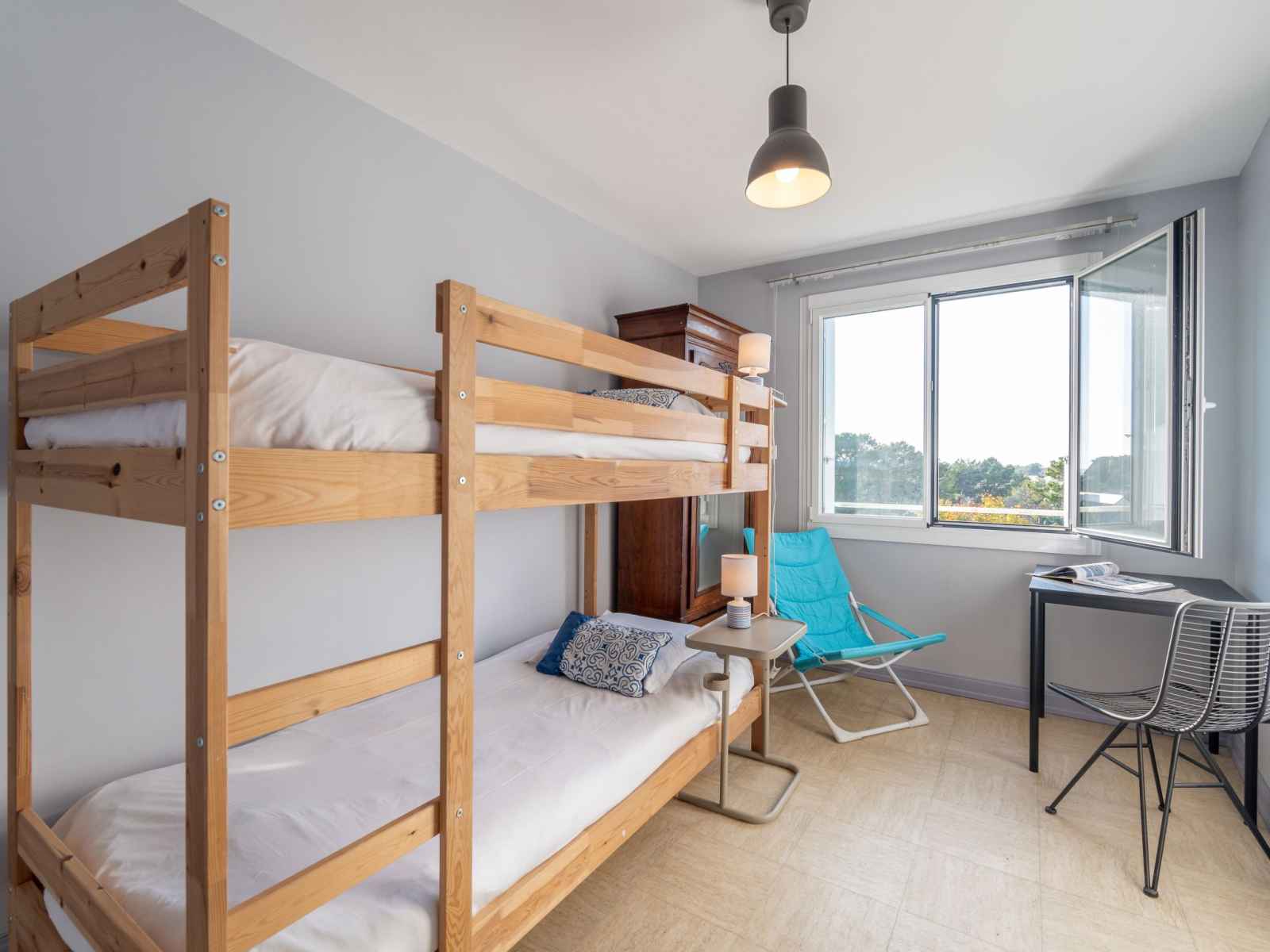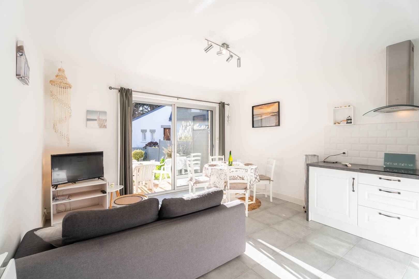 "la baie de beaumer", apt 2 pièces 61 m2 au 4ème étage. spacieux, aménagement confortable: séjour/salle à manger avec tv (écran plat). sortie sur la terrasse. grande alcôve avec 1 grand-lit (1 x 160 cm, longueur 190 cm). 1 chambre avec 1 x 2 lits superposés (90 cm, longueur 190 cm). cuisine (mini-four, lave-vaisselle, 3 plaques