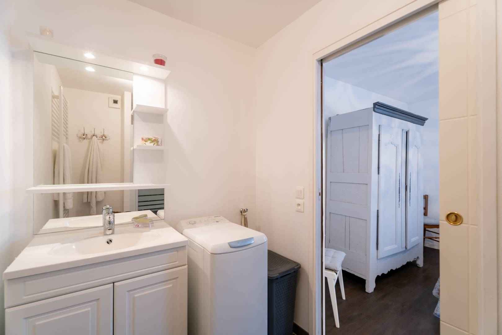 - 1 suite parentale avec 1 lit double (140, couette), rangements et salle d'eau attenante avec lave-linge
