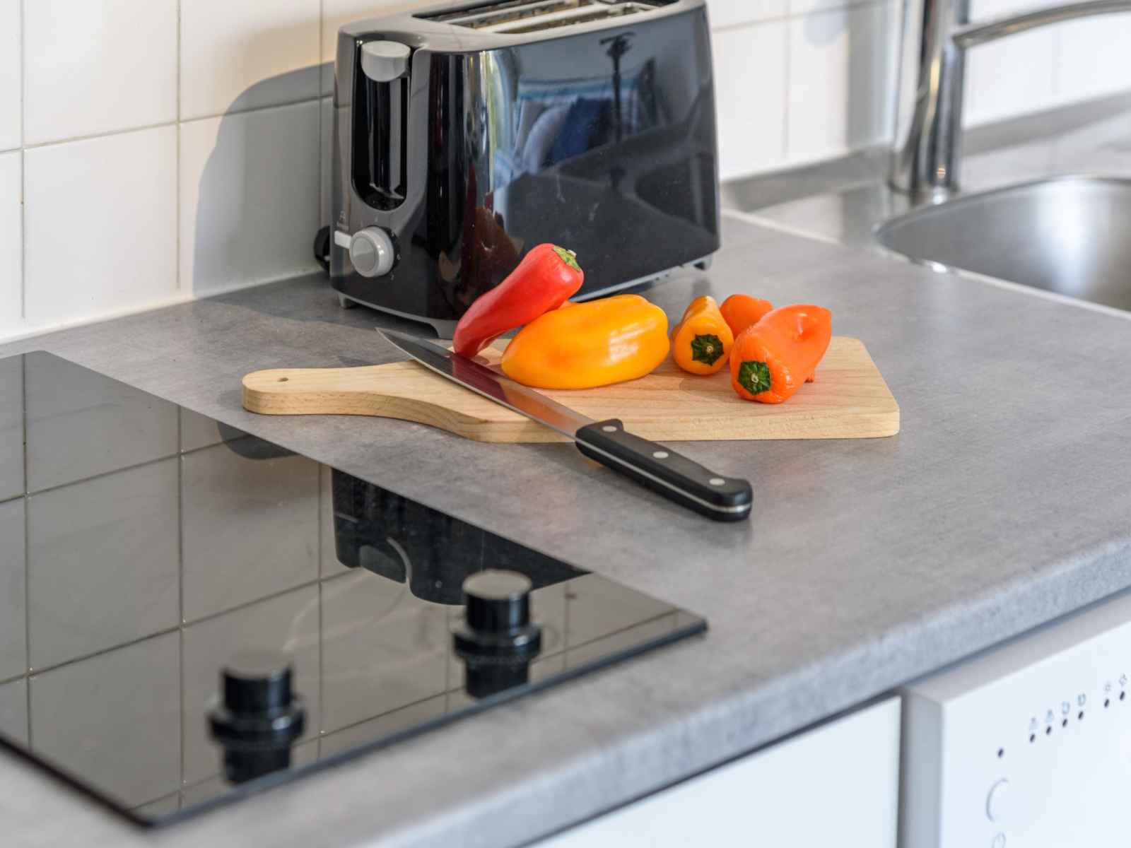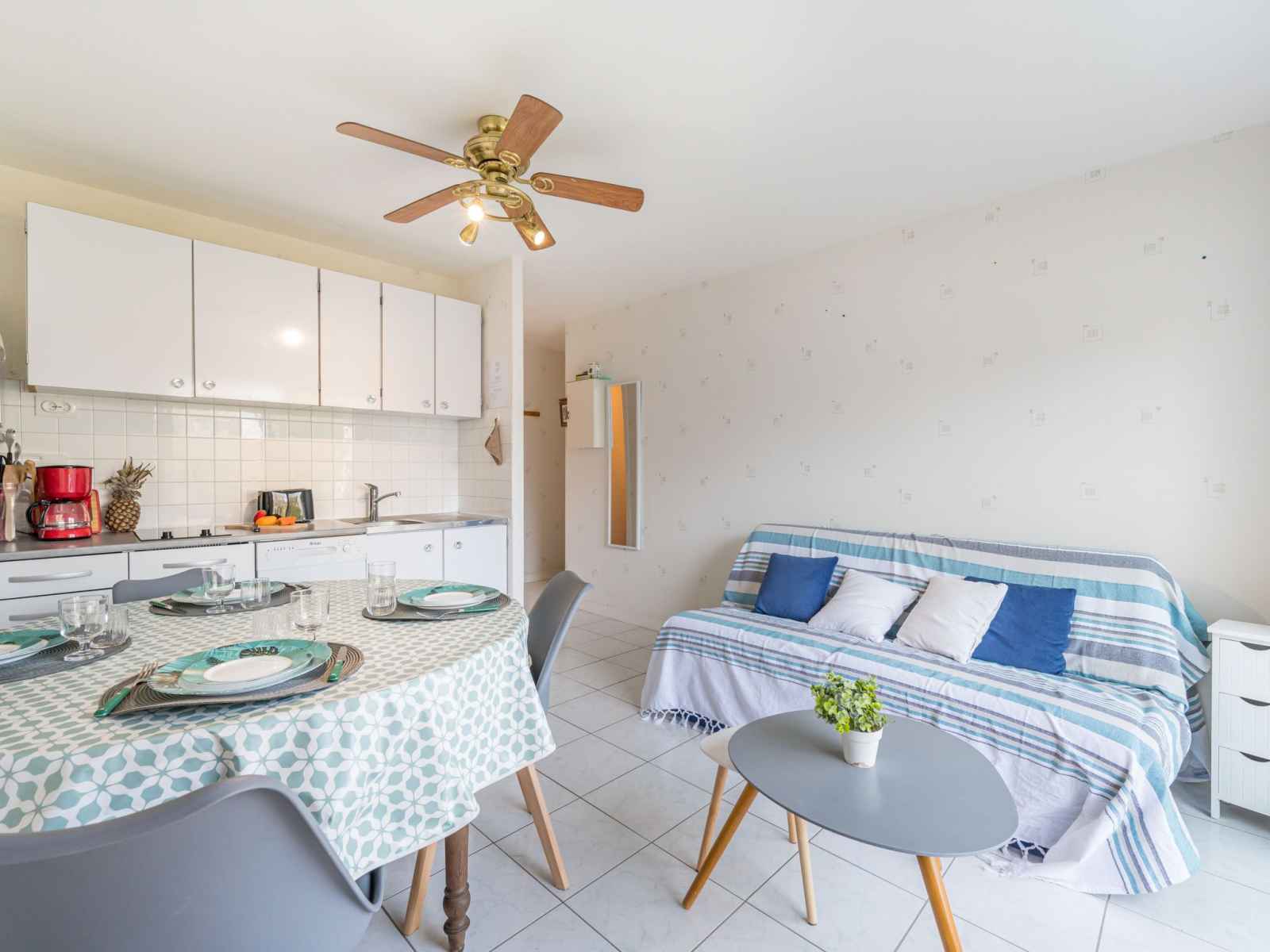 Apt 2 pièces 28 m2 au 1er étage. séjour/salle à manger avec 1 divan-lit double (1 x 140 cm, longueur 190 cm), tv (écran plat). sortie sur le balcon. 1 chambre avec 2 lits (80 cm, longueur 190 cm). cuisine ouverte (lave-vaisselle, 2 plaques vitrocéramiques, grille-pain, bouilloire électrique, micro-ondes, cafetière électrique). douche/wc.