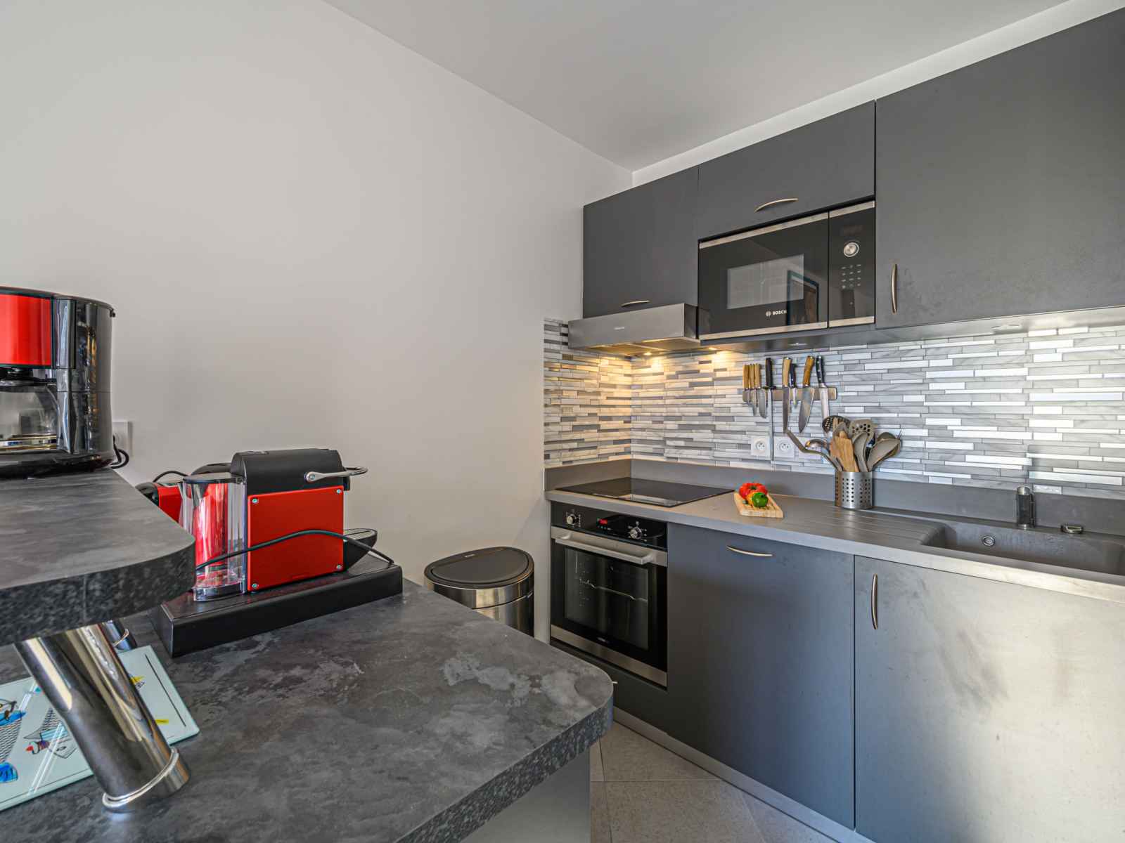 grille-pain, bouilloire électrique, micro-ondes, cafetière électrique, Capsules pour machine à café (NESPRESSO) (NON INCLUSES)). Douche/WC. Air-conditionné. Terrasse 10 m2, situation ouest, jardin 35 m2. Meubles de terrasse. A disposition: lave-linge, sèche-linge, sèche-cheveux. Internet (Connexion WIFI, gratuit). Place de parking No 11. Veuillez noter: détecteur de fumée. Annonce d'un particulier (art 155, IV du CGI). 5603400014713