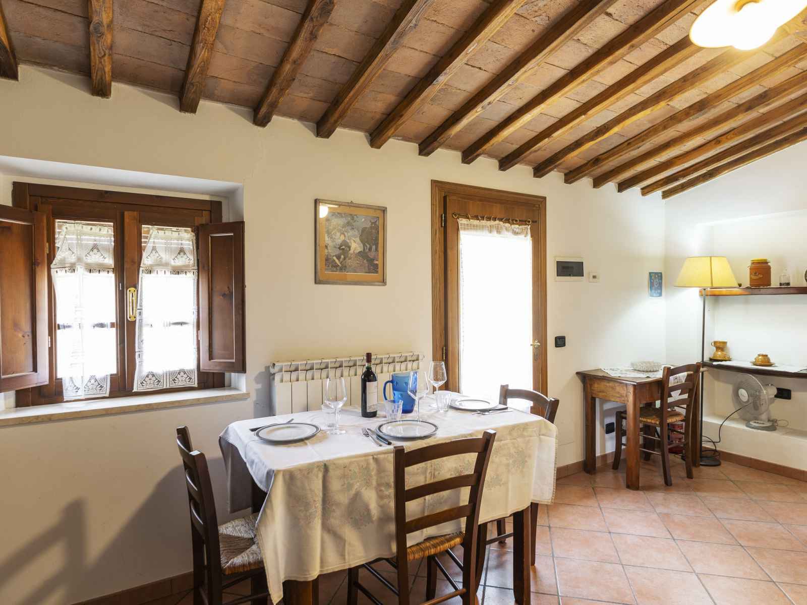 demande, 20 euros la semaine. domaine agricole rustique "le buche". À 14 km du centre de castellina in chianti, à 38 km du centre de siena, à 49 km du centre de firenze, situation tranquille, ensoleillée, dans la verdure. en commun: piscine cloturée (6 x 12 m, profondeur 130 - 230 cm, disponibilité saisonnière: 12.avr. - 01.nov.). ping-pong, barbecue. infrastructures de la maison: chauffage central, chauffage payable localement, possibilité de chauffage uniquement du 01.nov. - 15.avr.. accès en voiture jusqu'à la maison (600 m chemin non goudronné). place de parking sur le terrain. magasins 6 km, magasin d'alimentation 6 km, restaurant 6 km, arrêt de bus 6 km, gare ferroviaire "poggibonsi" 6 km, centre thermal "rapolano terme" 64 km. terrain de golf (9 trous) 10 km, tennis 6 km, centre équestre 10 km. attractions à proximité: barberino val d'elsa 16 km, san gimignano 21 km, monteriggioni e san donato 22 km, radda in chianti 24 km, badia a passignano 25 km, volterra 40 km. vente locale de produits de la ferme.