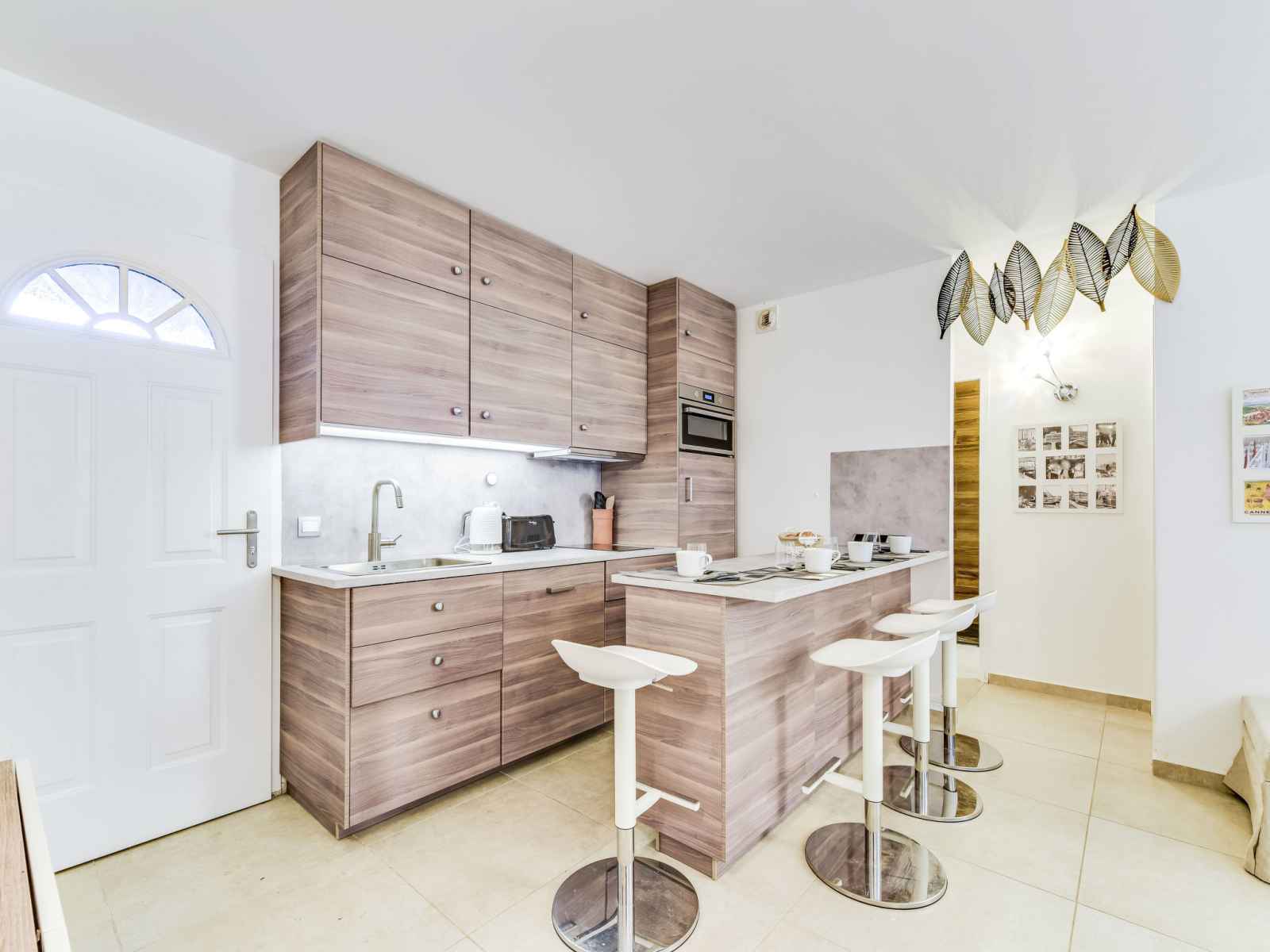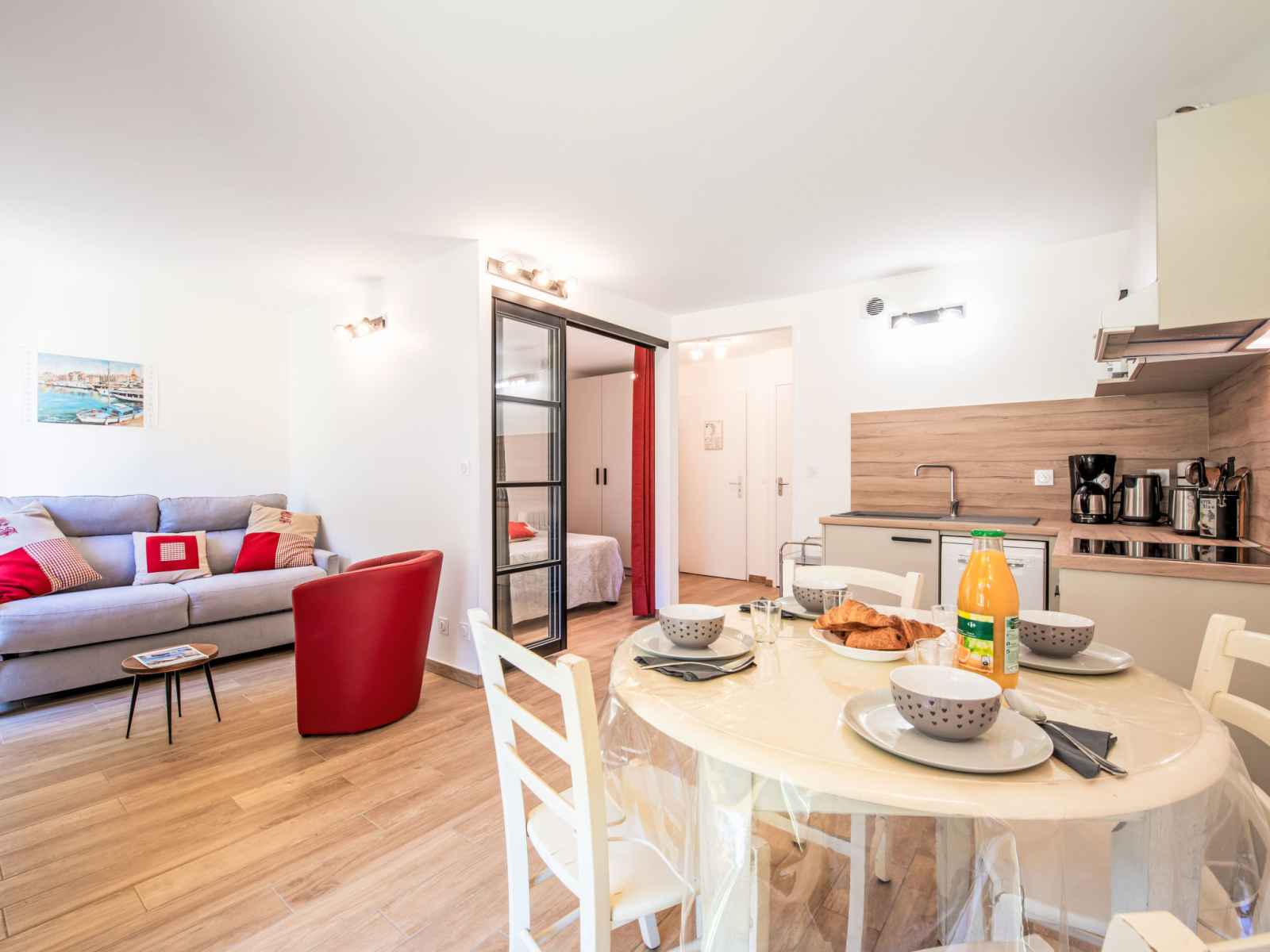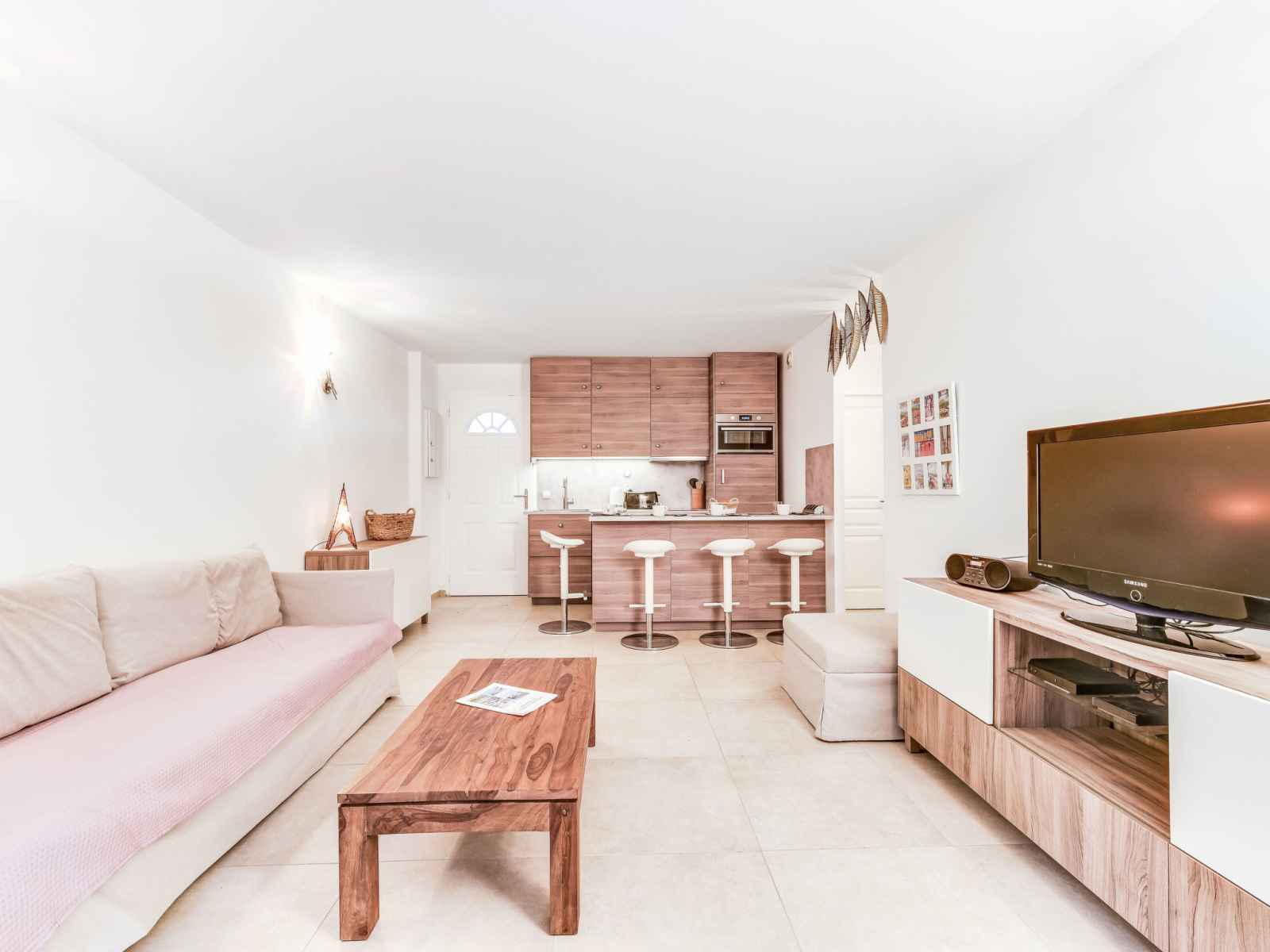 "le jardin d'artemis 1", apt 2 pièces 41 m2, au rez-de-chaussée. rénové en 2018, aménagement agréable et moderne: séjour avec 1 divan-lit (140 cm, longueur 190 cm), tv (écran plat). 1 chambre avec 1 grand-lit (140 cm, longueur 200 cm). sortie sur la terrasse. cuisine ouverte (2 plaques vitrocéramiques, cafetière électrique, combiné