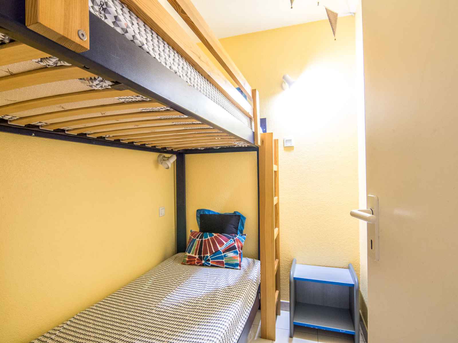 "les marines de gassin 3", apt 2 pièces 33 m2 au 3ème étage. aménagement fonctionnel et confortable: séjour/salle à manger avec 1 divan-lit double (120 cm, longueur 190 cm), tv (écran plat), dvd. sortie sur la terrasse. 1 petite chambre avec 1 x 2 lits superposés (80 cm, longueur 190 cm). coin cuisine (lave-vaisselle, 3 plaques à