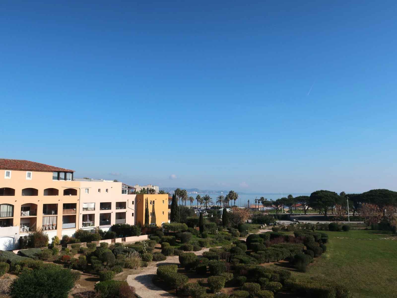 induction, micro-ondes). Salle de bains, WC séparé. Chauffage électrique. Terrasse 8 m2. Meubles de terrasse. Vue sur la mer et la piscine. A disposition: Internet (Connexion WIFI, en sus). Place de parking No 169. Veuillez noter: détecteur de fumée. 83065000061RQ