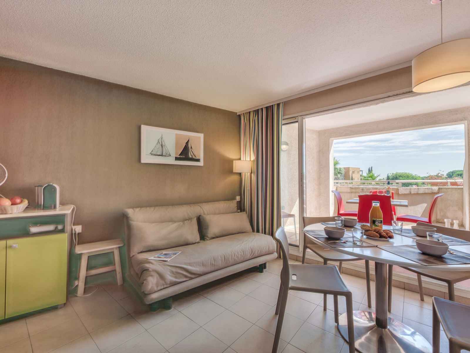 "les marines de gassin 12", apt 2 pièces 32 m2 au 1er étage. logement idéal pour 2 adultes + 2 enfants. aménagement agréable: séjour/salle à manger avec 1 divan-lit double (160 cm, longueur 190 cm), tv (écran plat). sortie sur le balcon. 1 petite chambre d'enfants avec 1 x 2 lits superposés (80 cm, longueur 190 cm). coin cuisine (4