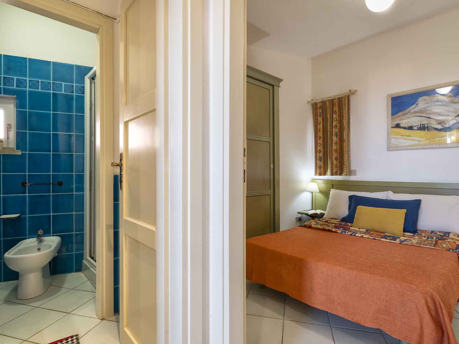 "cala rossa 2205", apt 2 pièces 45 m2, à l'étage supérieur. séjour/salle à manger avec 1 divan-lit double et tv (satellite) (écran plat), air-conditionné. sortie sur la terrasse. 1 chambre double. coin cuisine (4 plaques de cuisson, grille-pain, bouilloire électrique, micro-ondes). douche/bidet/wc. air-conditionné. chauffage pas dans