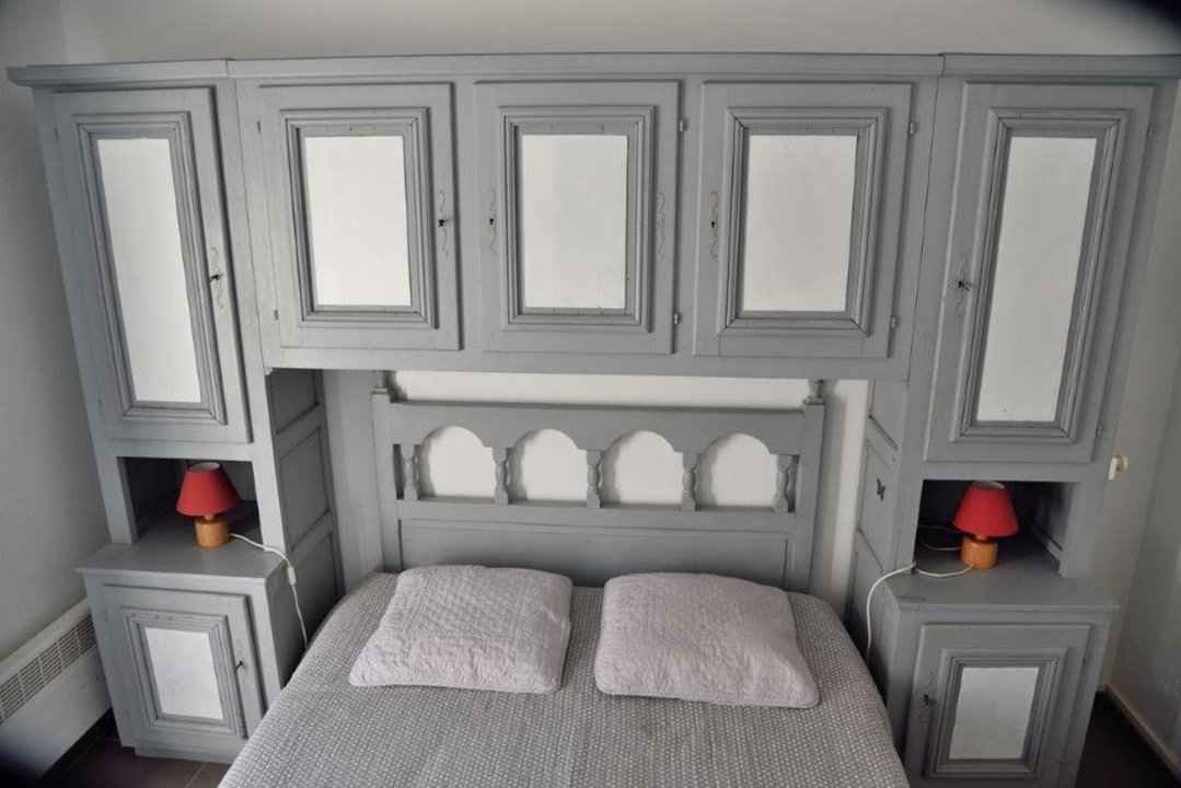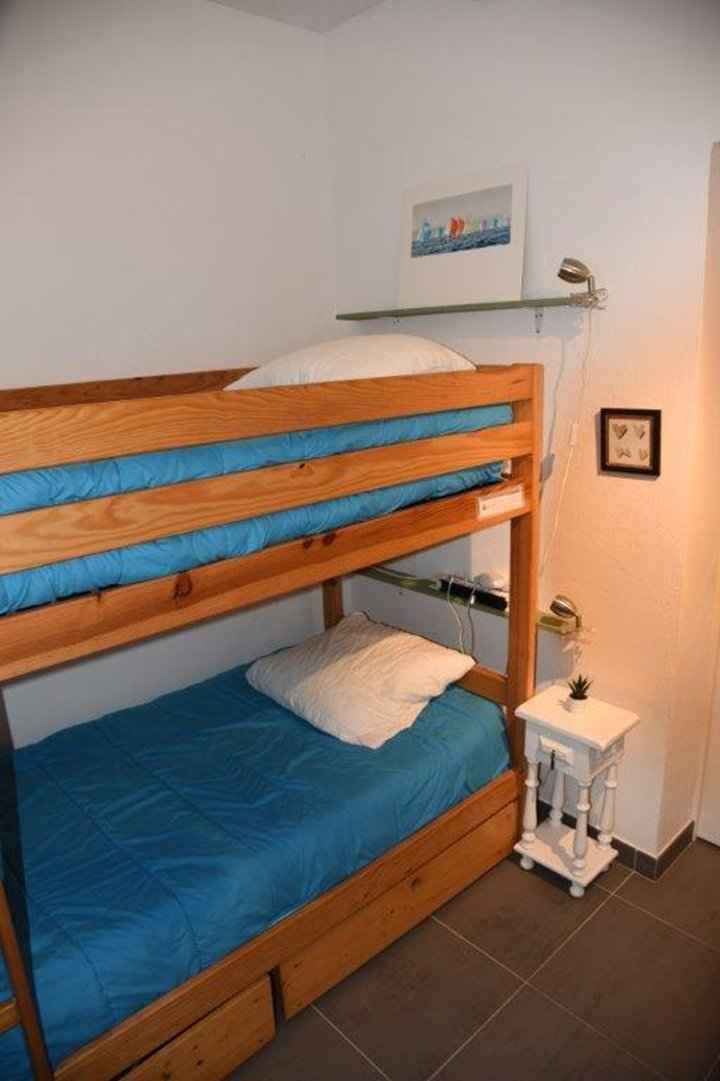 Une salle d'eau avec lave-linge, douche, WC ; une chambre avec un lit (160x2m); un espace cabine avec deux lits superposés (190cmx90cm)