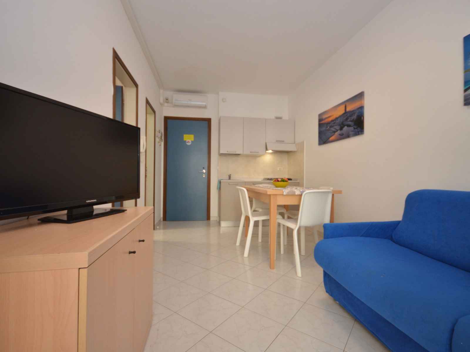 Apt 2 pièces 30 m2. aménagement de bon goût: séjour/chambre à coucher avec 1 divan-lit double, table pour les repas, coin-cuisine et tv (satellite). sortie sur le balcon. 1 chambre double. cuisine ouverte (poêle à gaz, 4 feux, micro-ondes, cafetière électrique). douche/bidet/wc. air-conditionné, chauffage à air chaud. chauffage pas dans