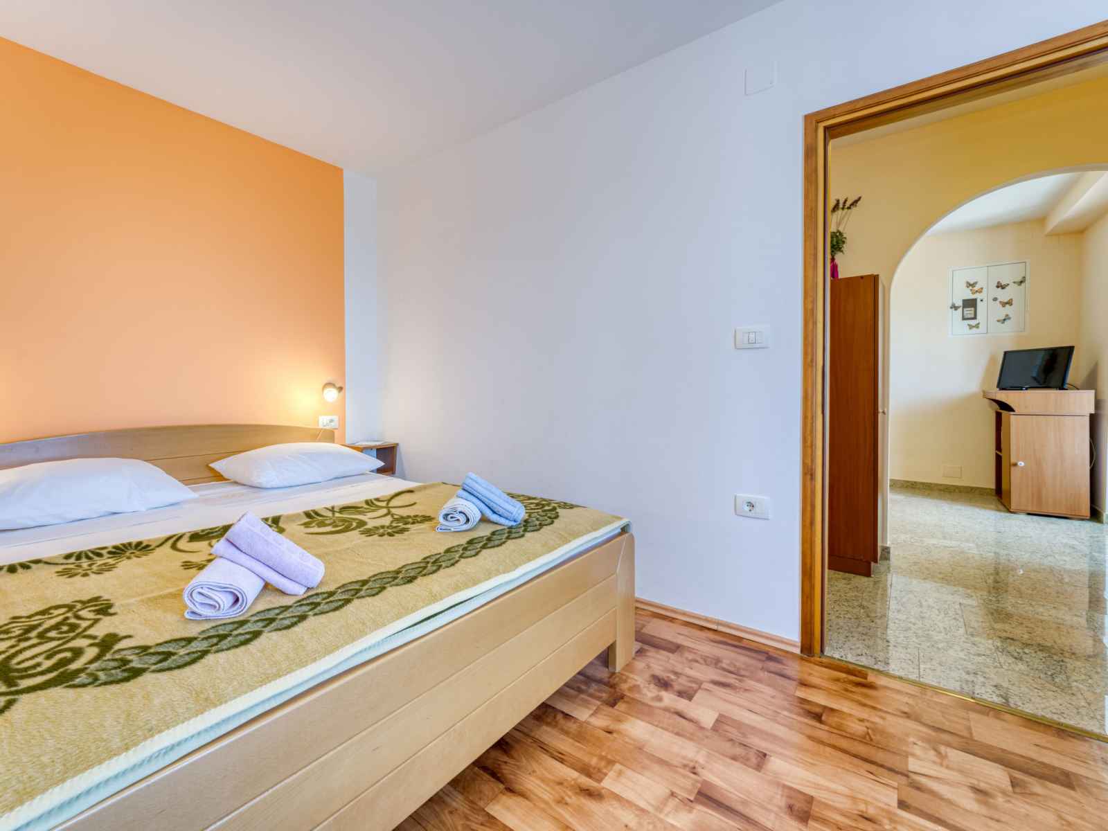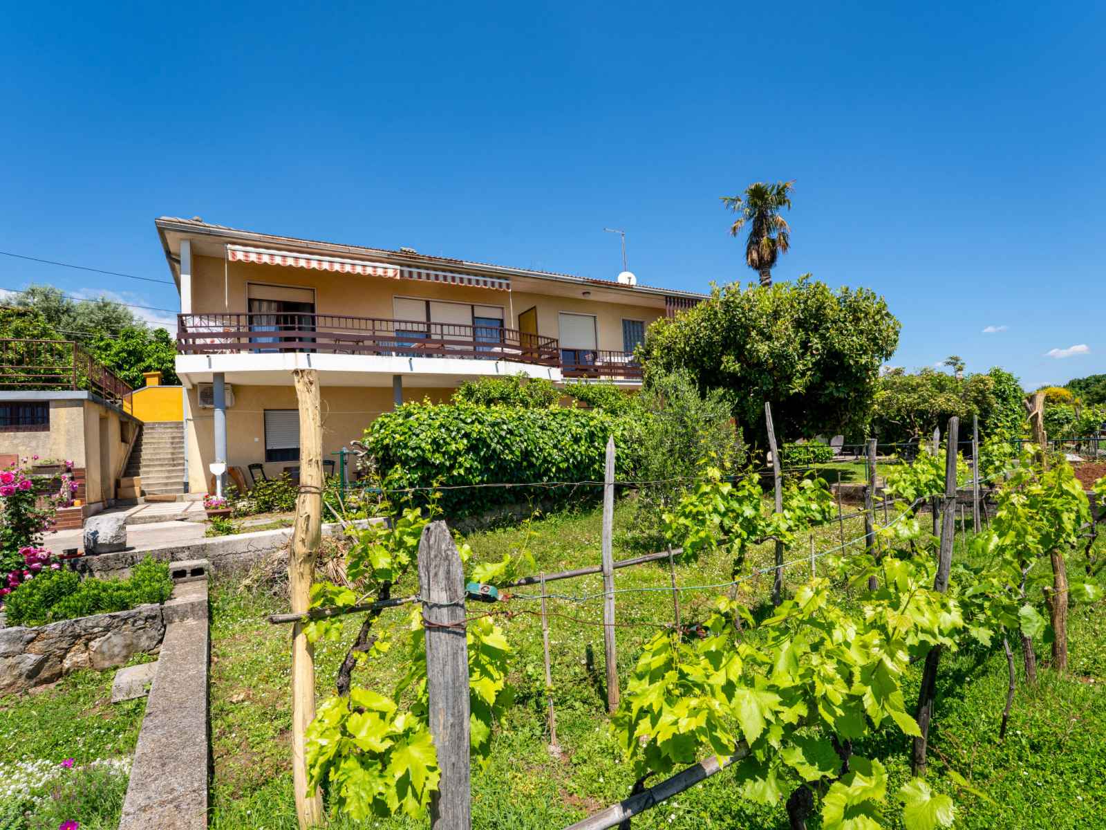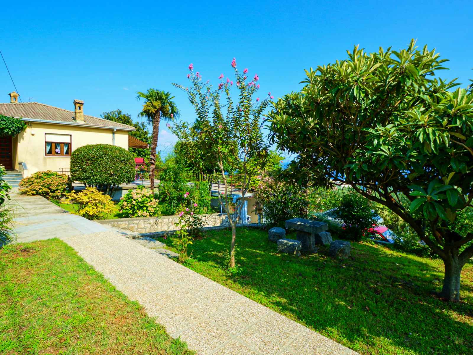 Immeuble "marija". 900 m du centre, situation tranquille, ensoleillée sur un versant, à 650 m de la mer, à 650 m de la plage, dans la verdure. en commun: jardin pelouse 60 m2, plantes. barbecue. infrastructures de la maison: accès internet, chauffage central. accès en voiture par un chemin étroite. place de parking près de la maison sur le