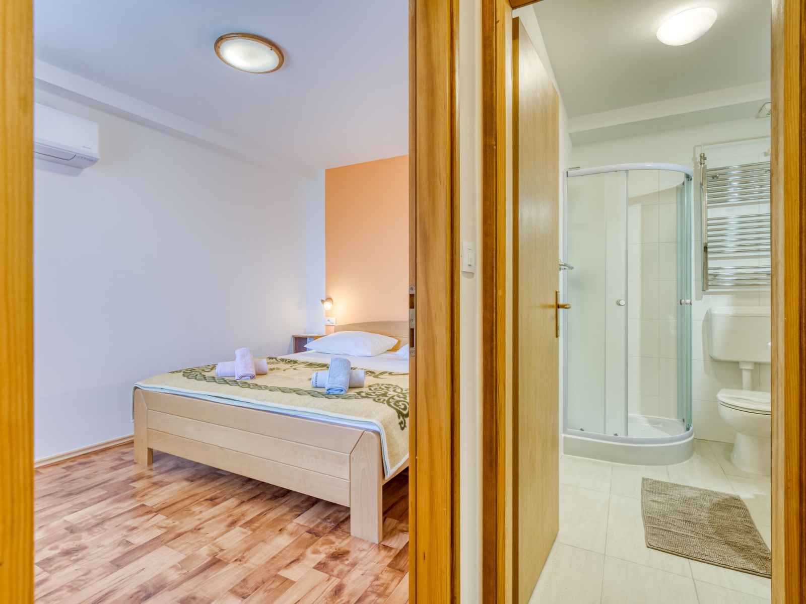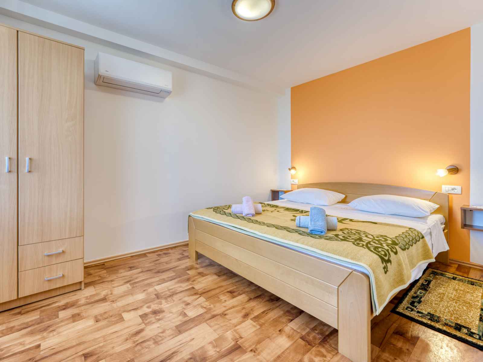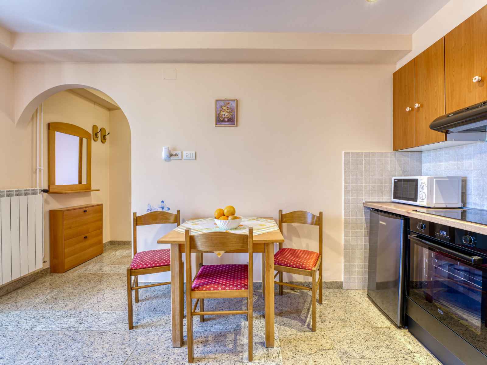 Immeuble "marija". 900 m du centre, situation tranquille, ensoleillée sur un versant, à 650 m de la mer, à 650 m de la plage, dans la verdure. en commun: jardin pelouse 60 m2, plantes. barbecue. infrastructures de la maison: accès internet, chauffage central. accès en voiture par un chemin étroite. place de parking près de la maison sur le