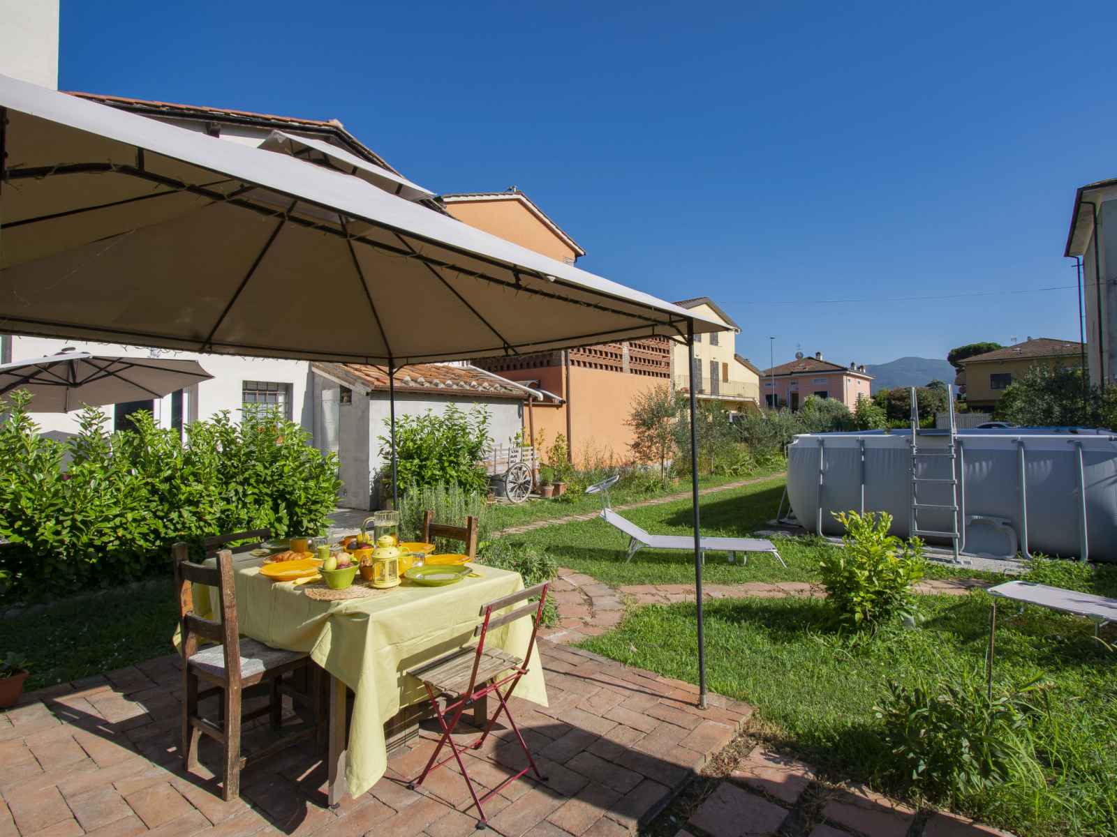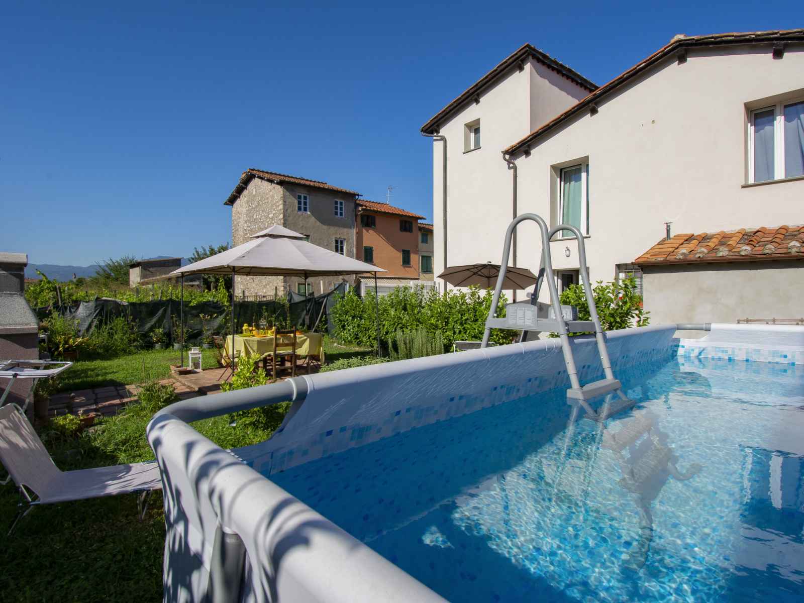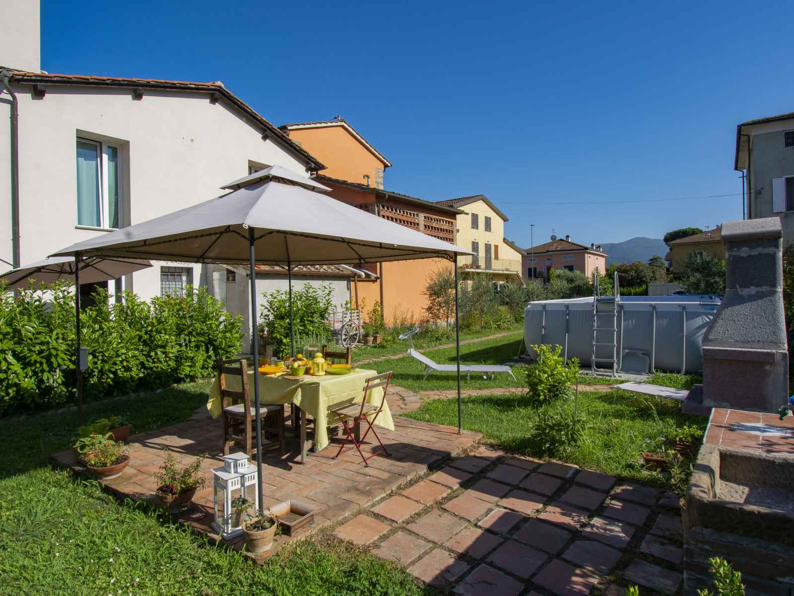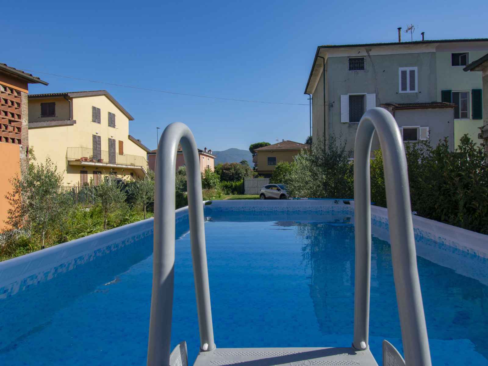 Maison moderne, accueillante, individuelle. dans la localité, à 1.5 km du centre de lucca, excellente situation: centrale mais tranquille. a usage privé: grand jardin 600 m2 (clôturé) plantes et fleurs, piscine (hors sol) cloturée (7 x 3 m, disponibilité saisonnière: 15.mai. - 15.oct.) avec marches intérieures. tonnelle, meubles de