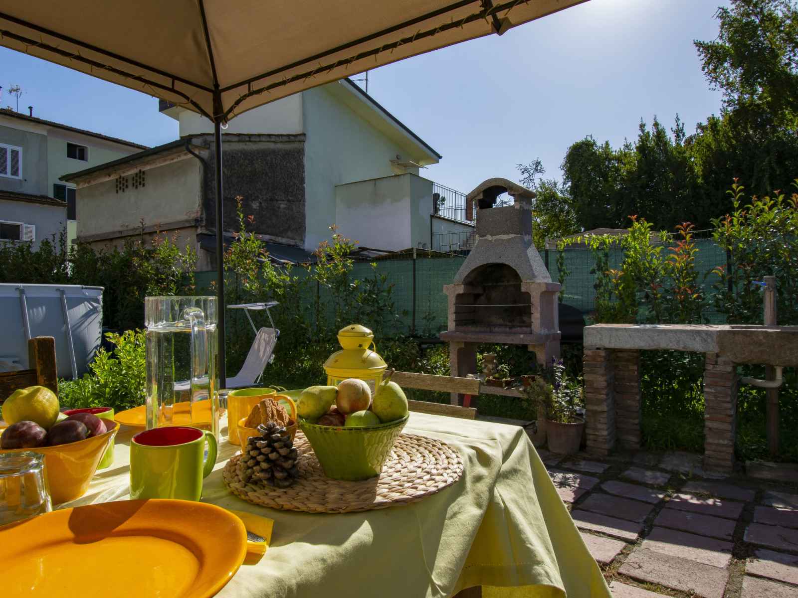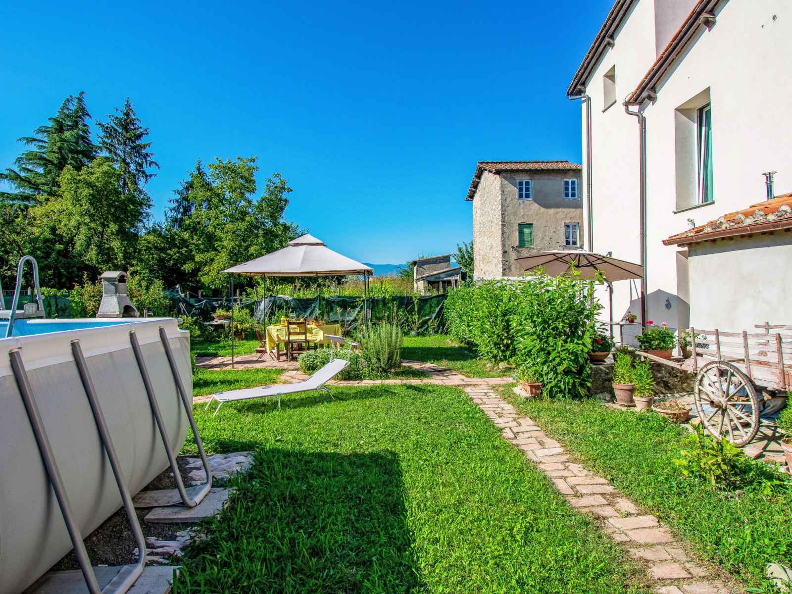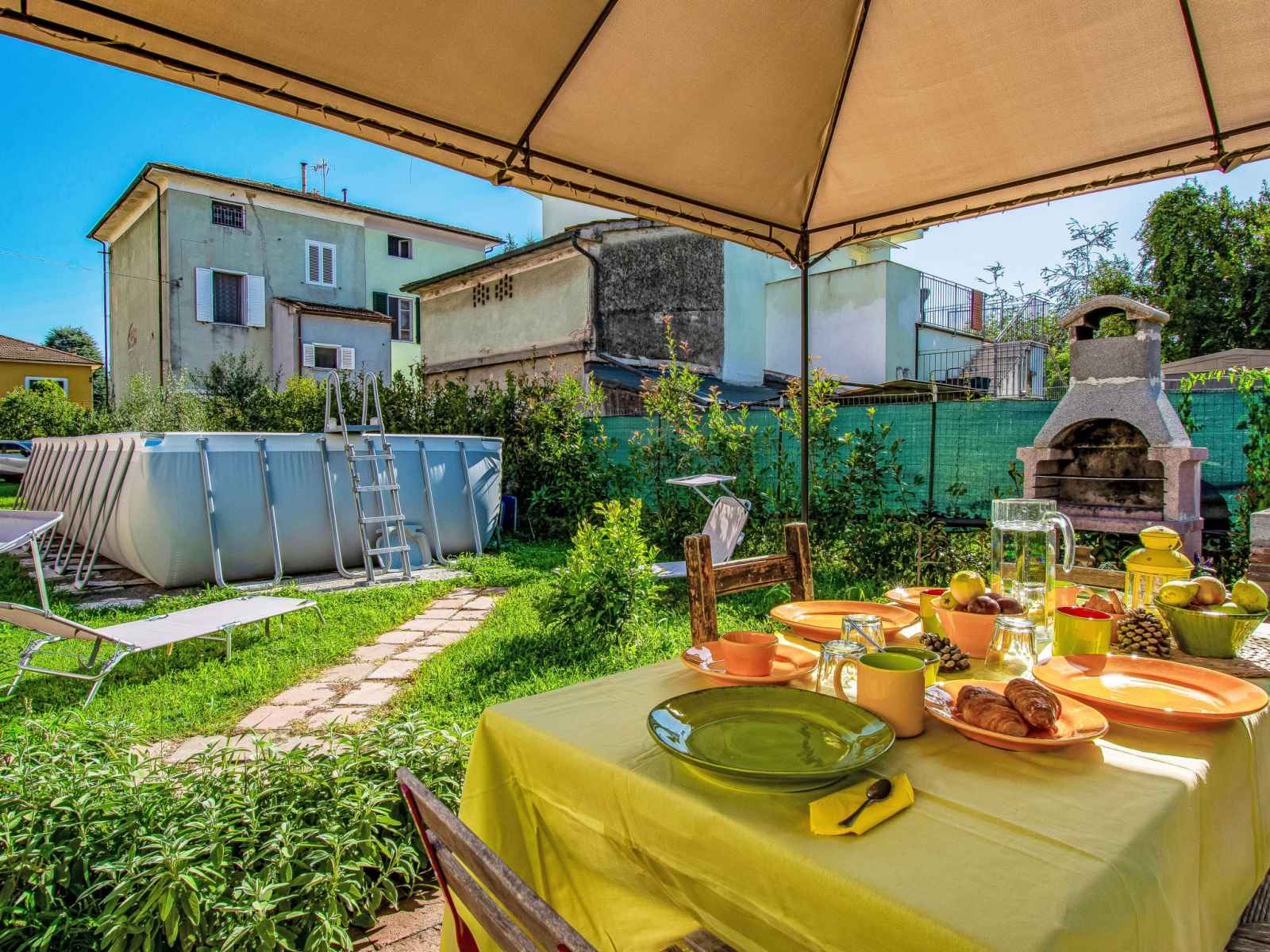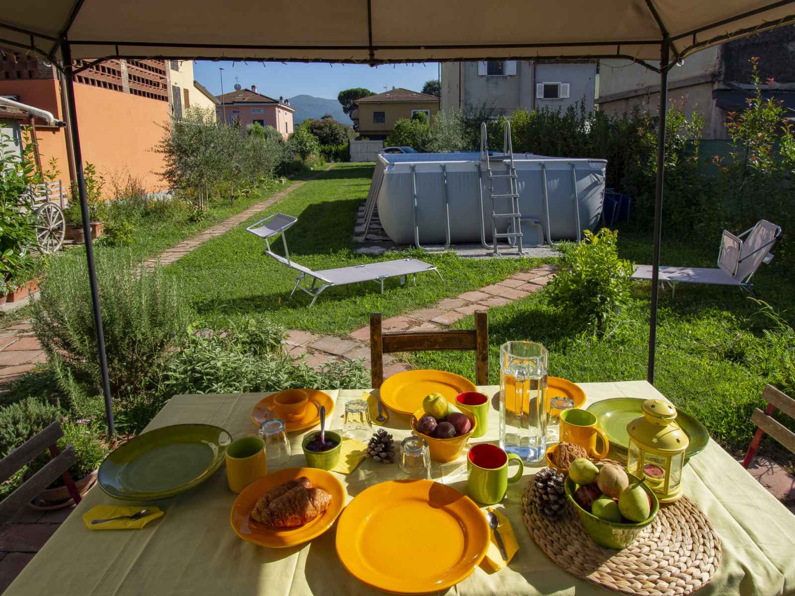 Maison moderne, accueillante, individuelle. dans la localité, à 1.5 km du centre de lucca, excellente situation: centrale mais tranquille. a usage privé: grand jardin 600 m2 (clôturé) plantes et fleurs, piscine (hors sol) cloturée (7 x 3 m, disponibilité saisonnière: 15.mai. - 15.oct.) avec marches intérieures. tonnelle, meubles de