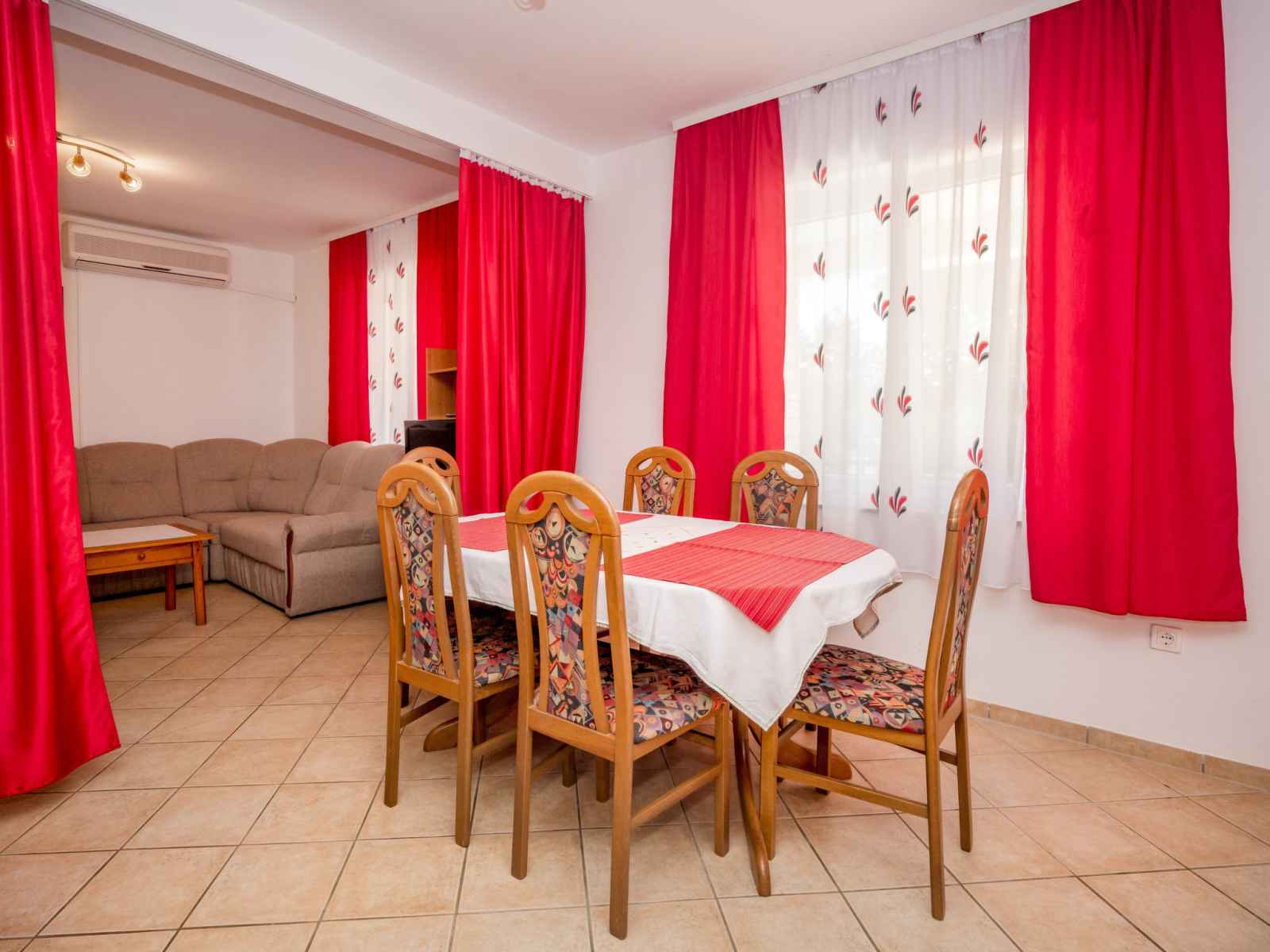 Bel immeuble "hilde red". À 300 m du centre de medulin, situation ensoleillée, à 100 m de la mer, à 350 m de la plage. en commun: terrain, jardin avec pelouse, piscine rectangulaire (11 x 6 m, profondeur 140 cm, disponibilité saisonnière: 01.jun. - 14.sep.). bassin pour les enfants, barbecue. infrastructures de la maison: lave-linge (en sus)