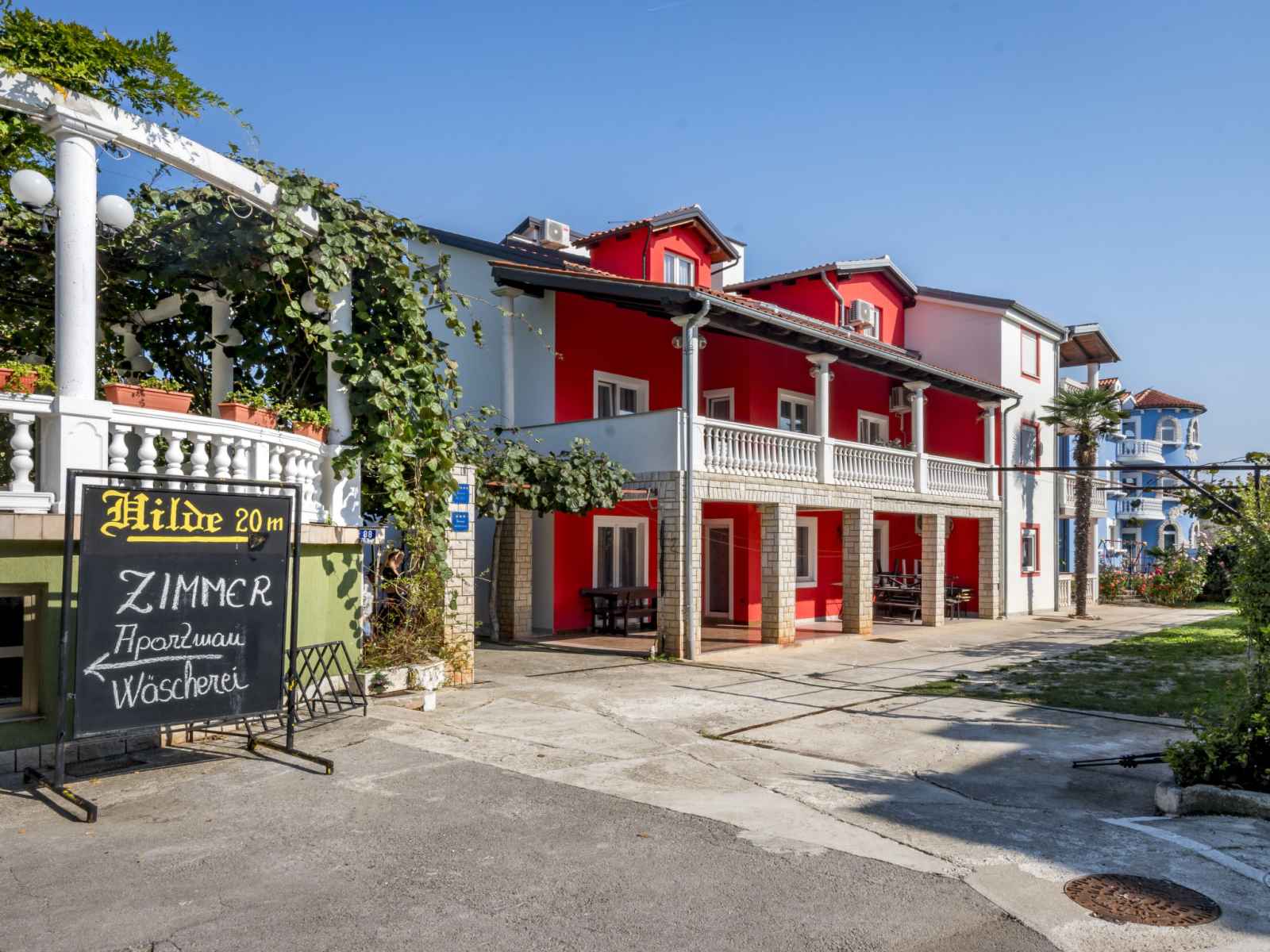 Bel immeuble "hilde red". À 300 m du centre de medulin, situation ensoleillée, à 100 m de la mer, à 350 m de la plage. en commun: terrain, jardin avec pelouse, piscine rectangulaire (11 x 6 m, profondeur 140 cm, disponibilité saisonnière: 01.jun. - 14.sep.). bassin pour les enfants, barbecue. infrastructures de la maison: lave-linge (en sus)