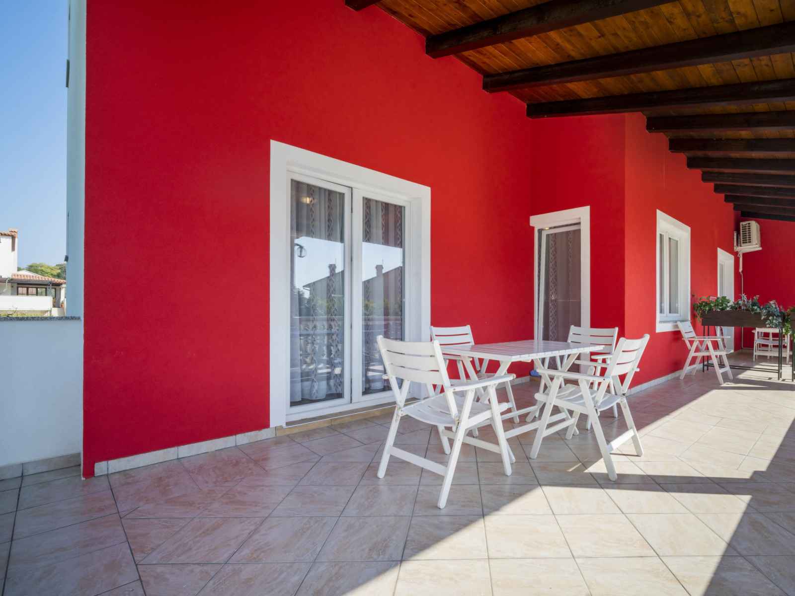 Bel immeuble "hilde red". À 300 m du centre de medulin, situation ensoleillée, à 100 m de la mer, à 350 m de la plage. en commun: terrain, jardin avec pelouse, piscine rectangulaire (11 x 6 m, profondeur 140 cm, disponibilité saisonnière: 01.jun. - 14.sep.). bassin pour les enfants, barbecue. infrastructures de la maison: lave-linge (en sus)