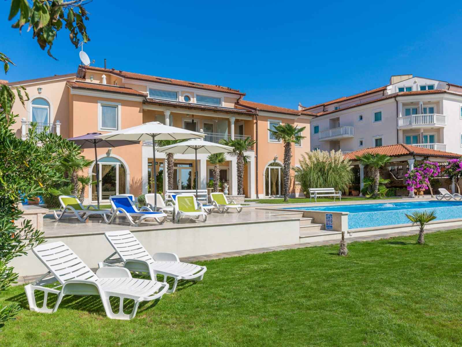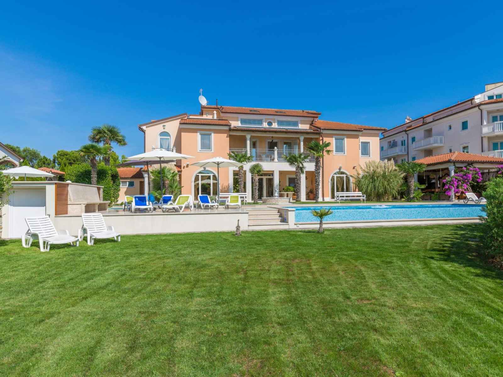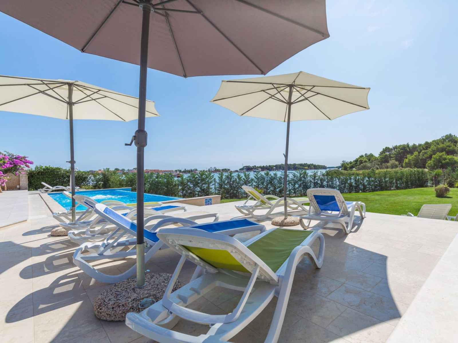 Belle petite résidence accueillante "villa vizula", de 3 étages. À 500 m du centre de medulin, situation ensoleillée, à 10 m de la mer, à 250 m de la plage. en commun: terrain 1'000 m2 (clôturé), piscine rectangulaire (11 x 4 m, 40 m2, profondeur 140 cm, disponibilité saisonnière: 01.jun. - 01.oct.). douche extérieure, terrasse (20 m2),