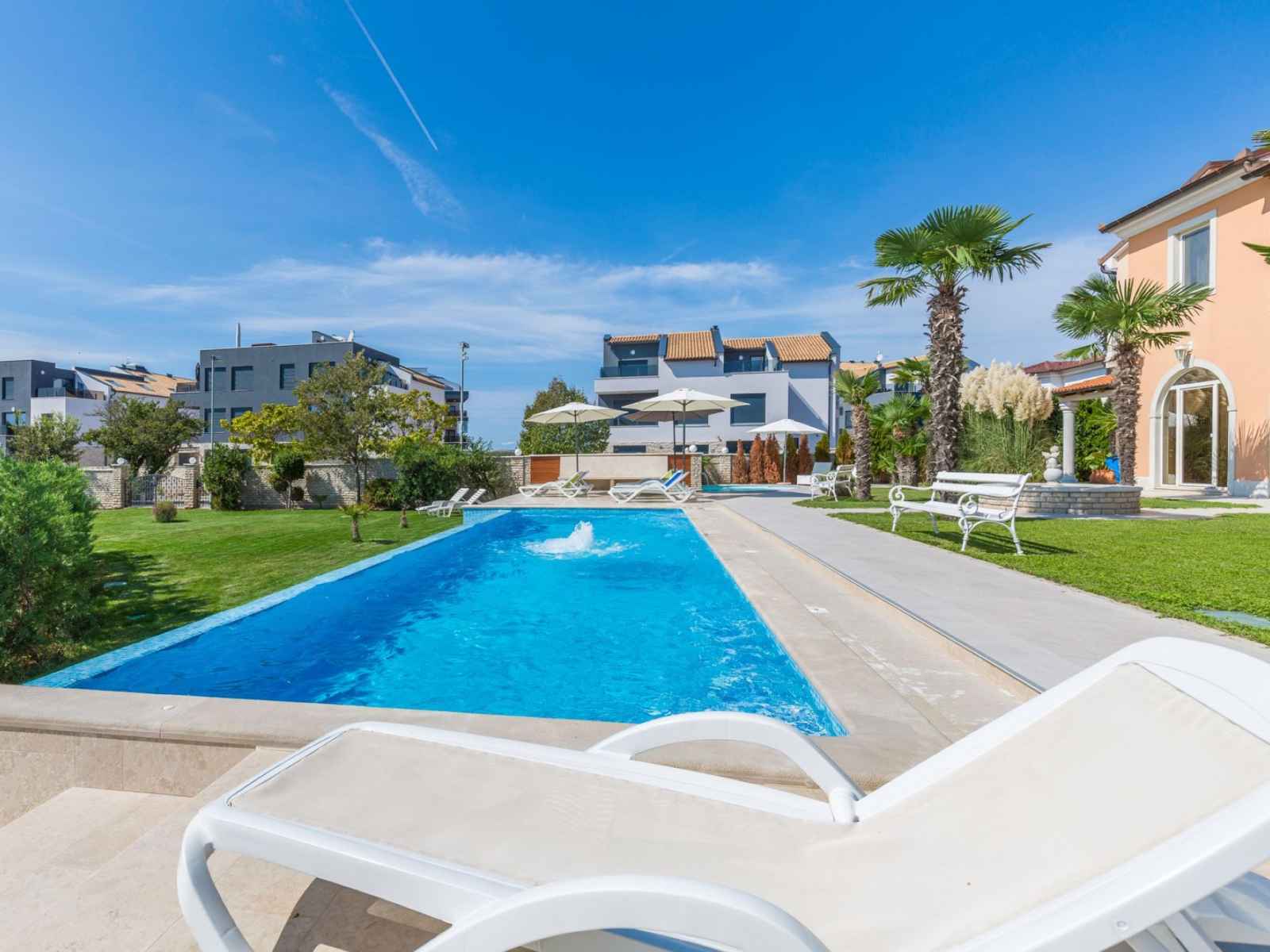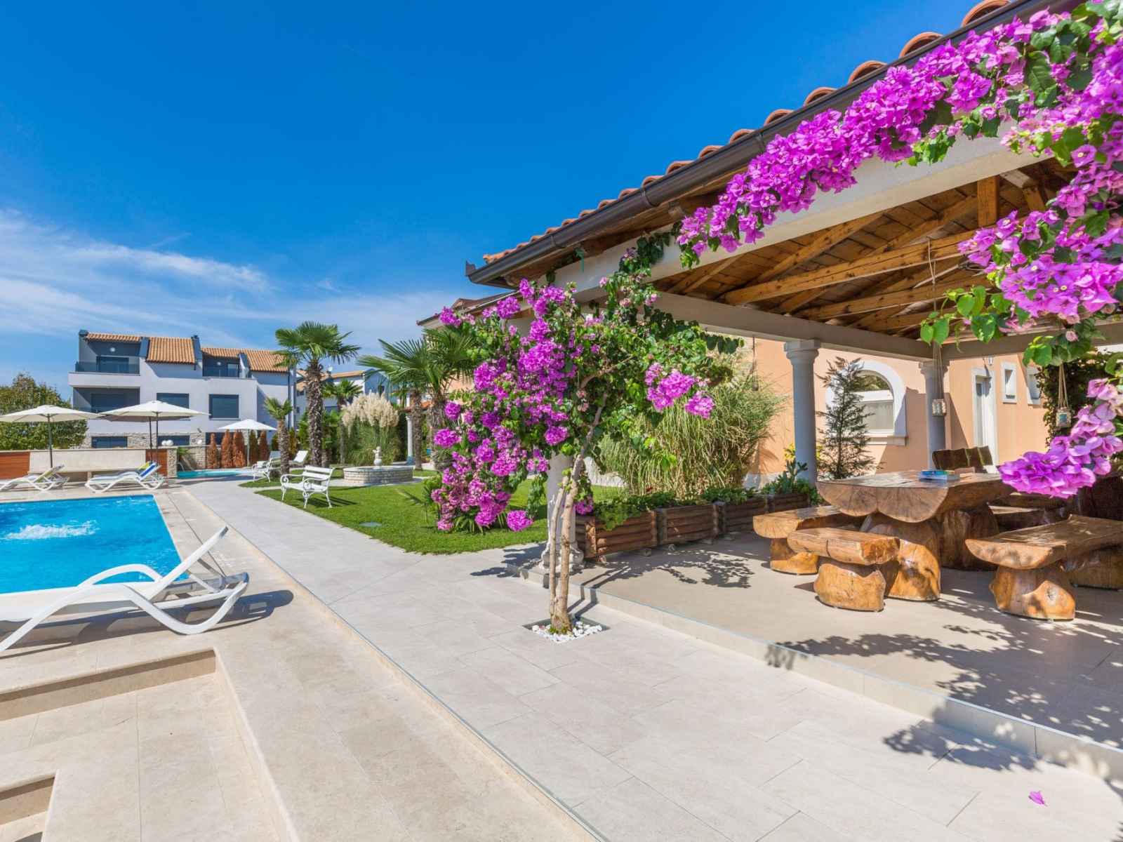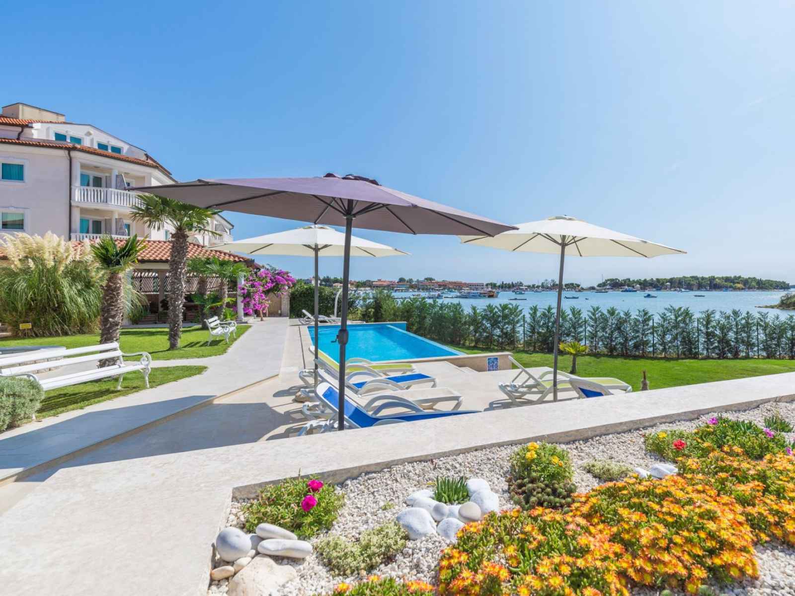 Belle petite résidence accueillante "villa vizula", de 3 étages. À 500 m du centre de medulin, situation ensoleillée, à 10 m de la mer, à 250 m de la plage. en commun: terrain 1'000 m2 (clôturé), piscine rectangulaire (11 x 4 m, 40 m2, profondeur 140 cm, disponibilité saisonnière: 01.jun. - 01.oct.). douche extérieure, terrasse (20 m2),