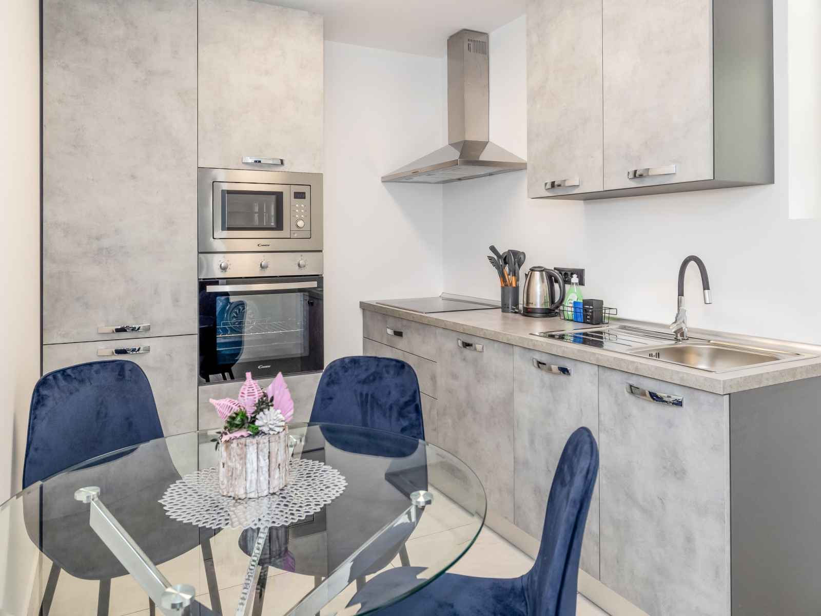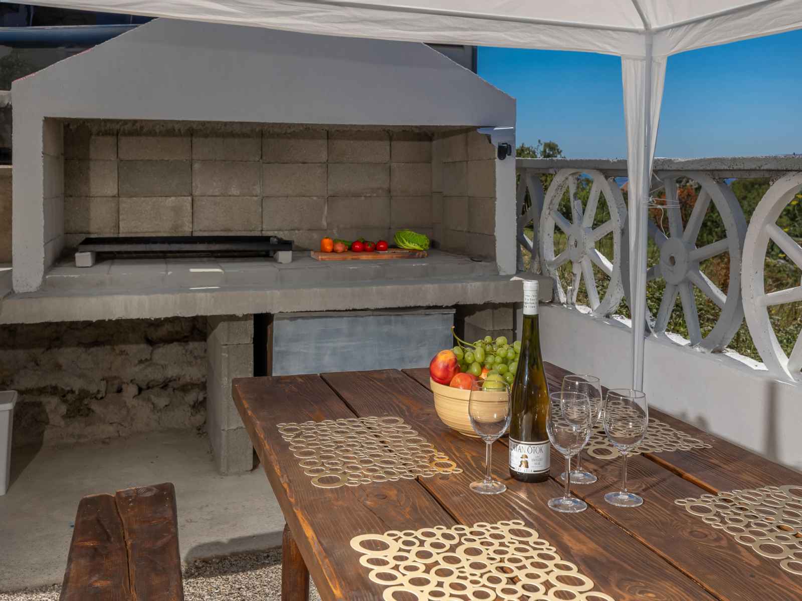 grille-pain, bouilloire électrique, congélateur). Douche/WC. Chauffage à air chaud. Possibilité de chauffage uniquement du 01.10. au 01.05. Terrasse 40 m2. Meubles de terrasse. Belle vue sur la mer. A disposition: Internet (Connexion WIFI, gratuit). Place de parking près de la maison.