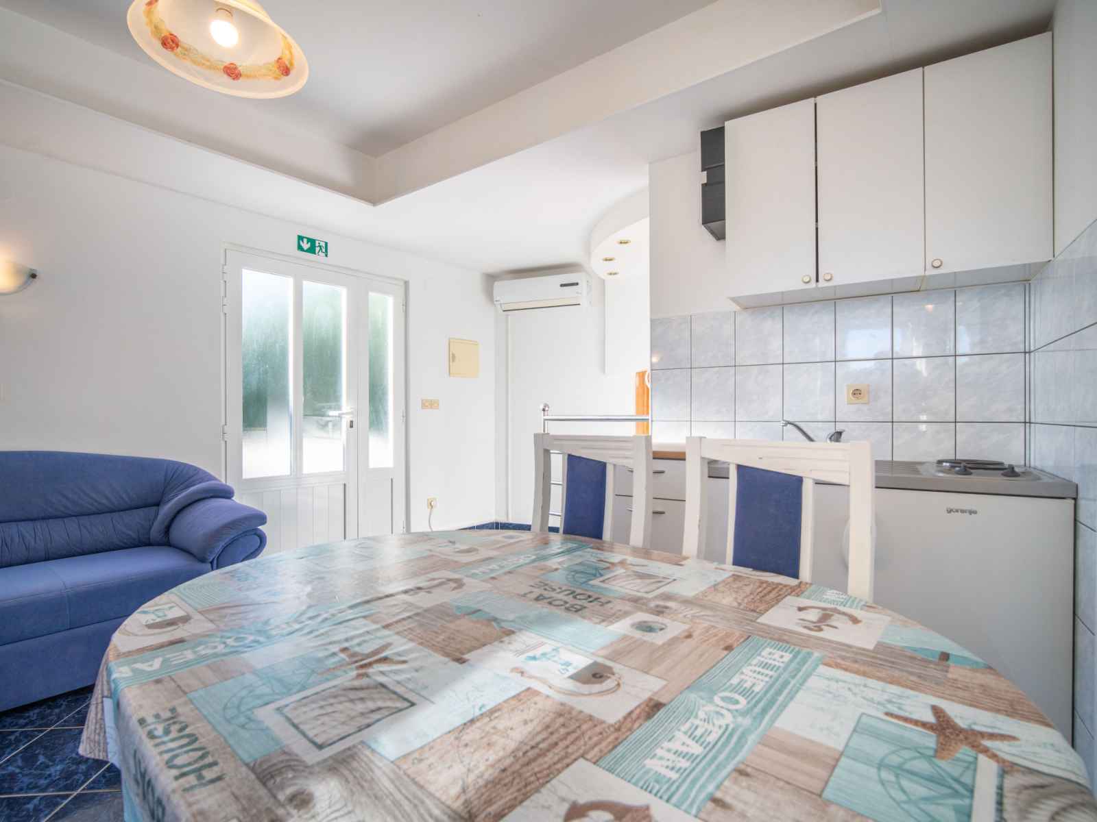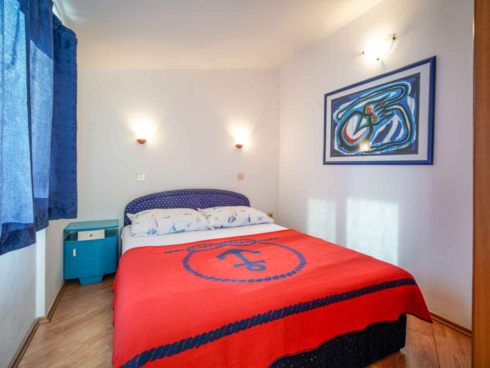 "plavi", apt 2 pièces 30 m2 au 1er étage. séjour/salle à manger avec tv (satellite) et air-conditionné. 1 chambre avec 1 grand-lit (160 cm, longueur 200 cm). cuisine ouverte (2 plaques de cuisson, bouilloire électrique). douche/wc. chauffage à air chaud. petite terrasse 10 m2. meubles de terrasse. a disposition: lit bébé, sèche-cheveux.