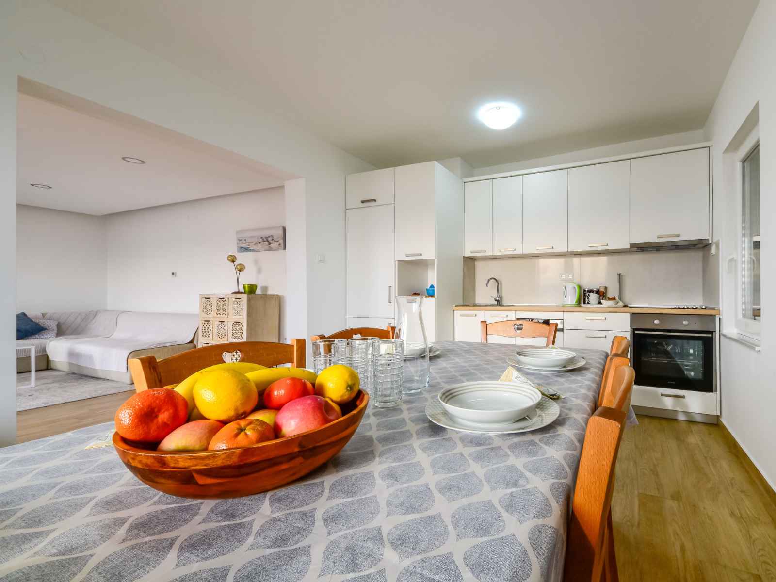 vitrocéramiques, bouilloire électrique, congélateur). Bain/douche/WC. Chauffage électrique, chauffage par le sol. Possibilité de chauffage uniquement du 01.10. au 01.05. Terrasse 20 m2 partiellement couverte. Meubles de terrasse. Belle vue panoramique sur la mer. A disposition: Internet (Connexion WIFI, gratuit). Veuillez noter: TV seulement HR.