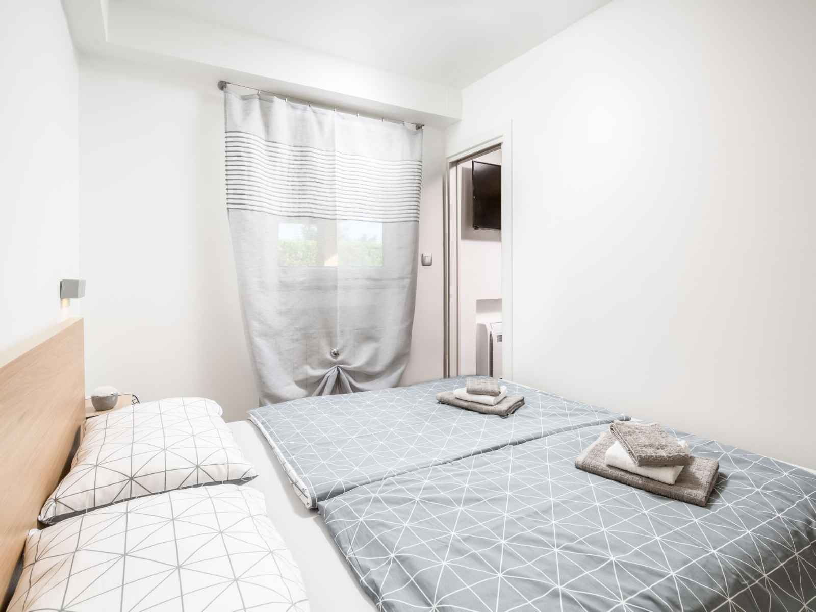 Apt 2 pièces 22 m2, au rez-de-chaussée, situation sud-est. séjour/salle à manger avec tv (satellite) (écran plat). sortie sur la terrasse. 1 chambre avec 1 grand-lit (160 cm, longueur 200 cm). cuisine ouverte (four, 2 plaques vitrocéramiques, cafetière électrique). douche/wc. chauffage au fuel (en sus). terrasse 26 m2, couverte. meubles de