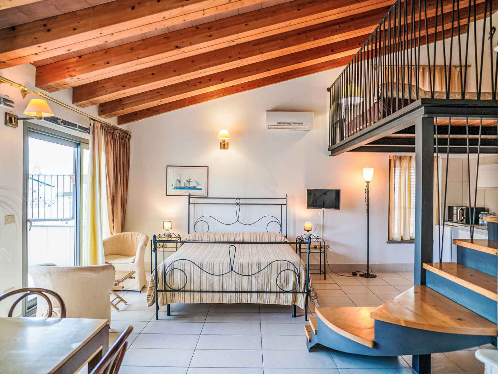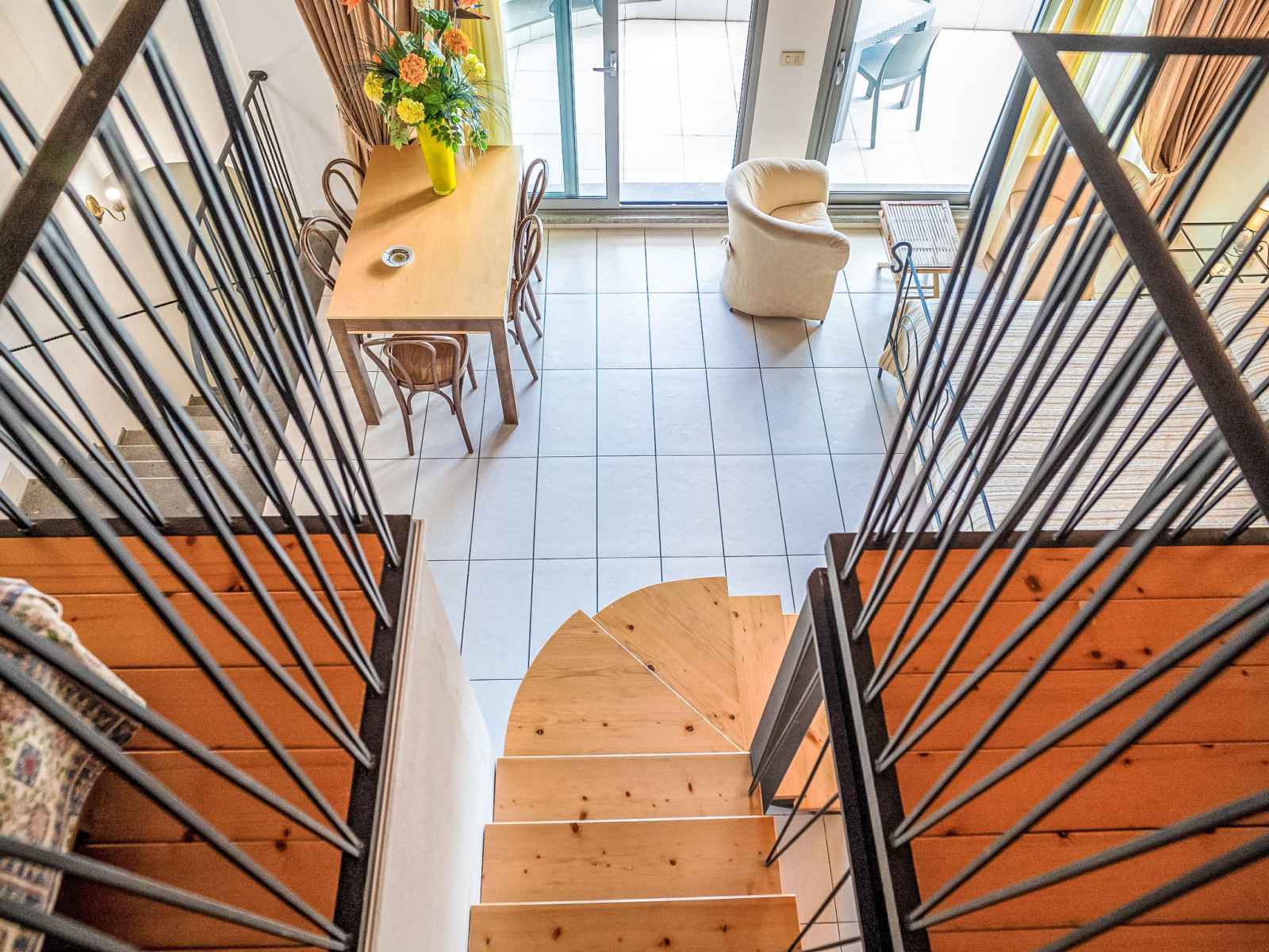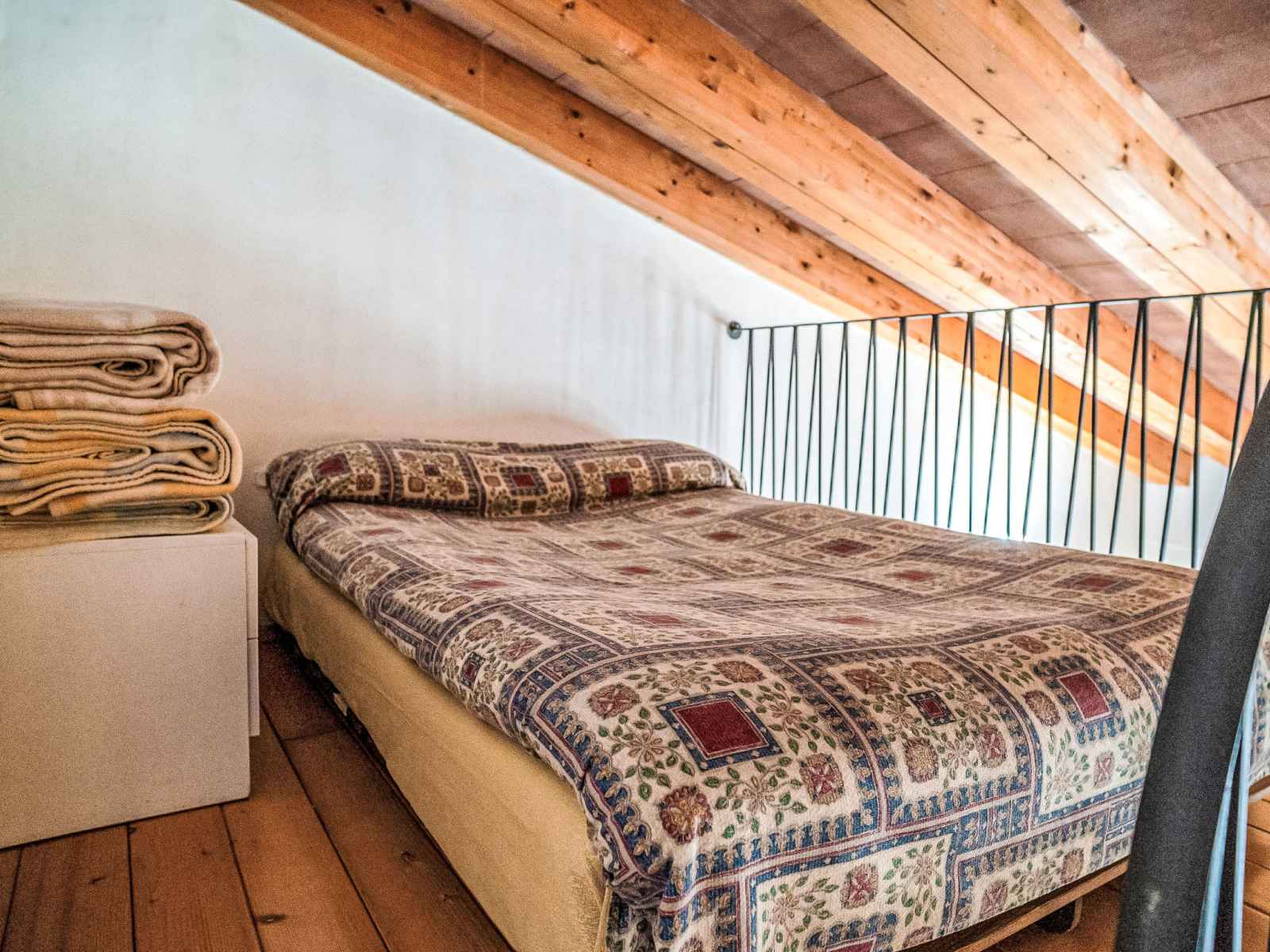 "roof", apt 2 pièces au 3ème étage. aménagement très confortable et plaisant: séjour/salle à manger avec 1 lit double, tv et air-conditionné. sortie sur le balcon. mansardé avec 1 lit et 1 lit double. coin cuisine (4 feux, bouilloire électrique, cafetière électrique). sortie sur le balcon. douche/bidet/wc. chauffage. maximum 1 animal/