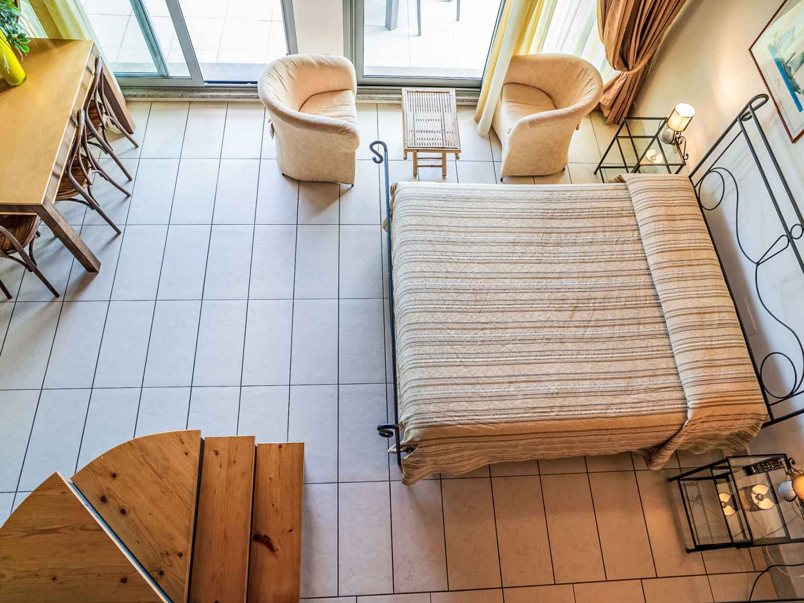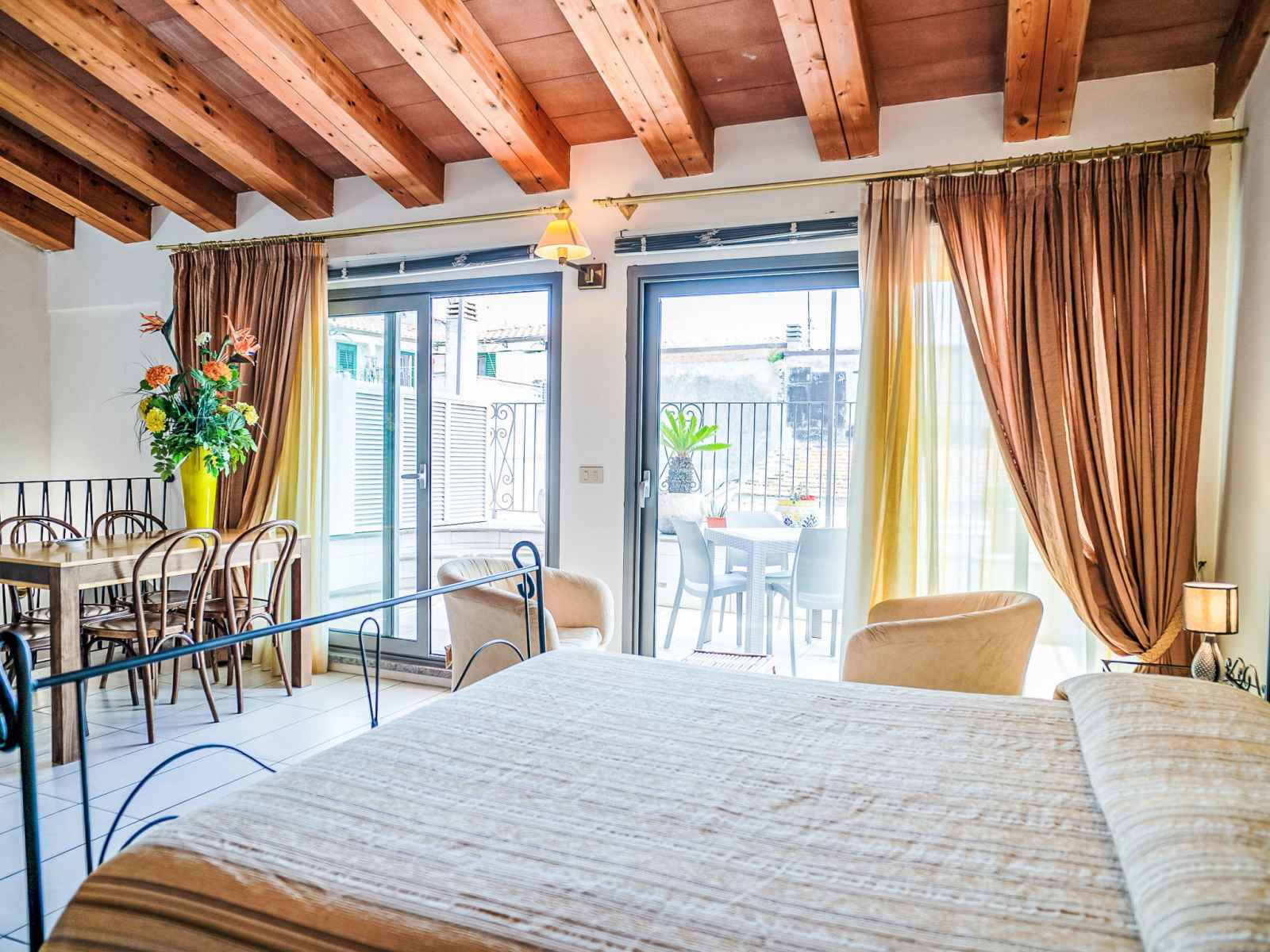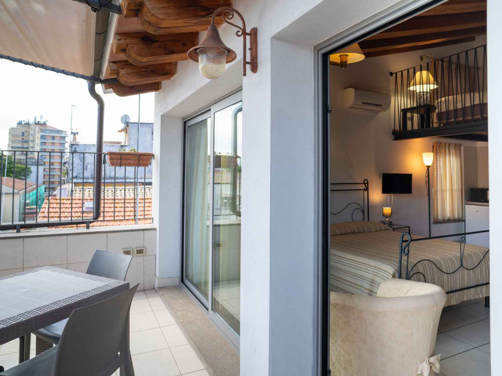"roof", apt 2 pièces au 3ème étage. aménagement très confortable et plaisant: séjour/salle à manger avec 1 lit double, tv et air-conditionné. sortie sur le balcon. mansardé avec 1 lit et 1 lit double. coin cuisine (4 feux, bouilloire électrique, cafetière électrique). sortie sur le balcon. douche/bidet/wc. chauffage. maximum 1 animal/