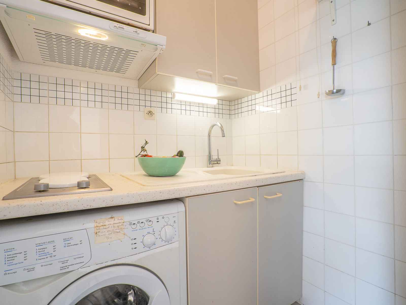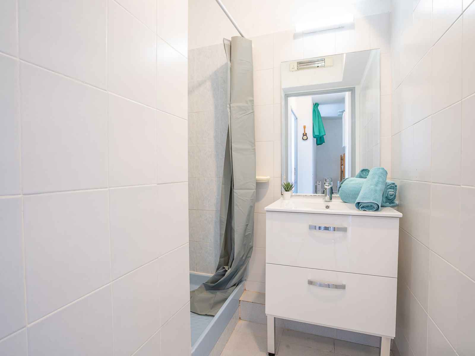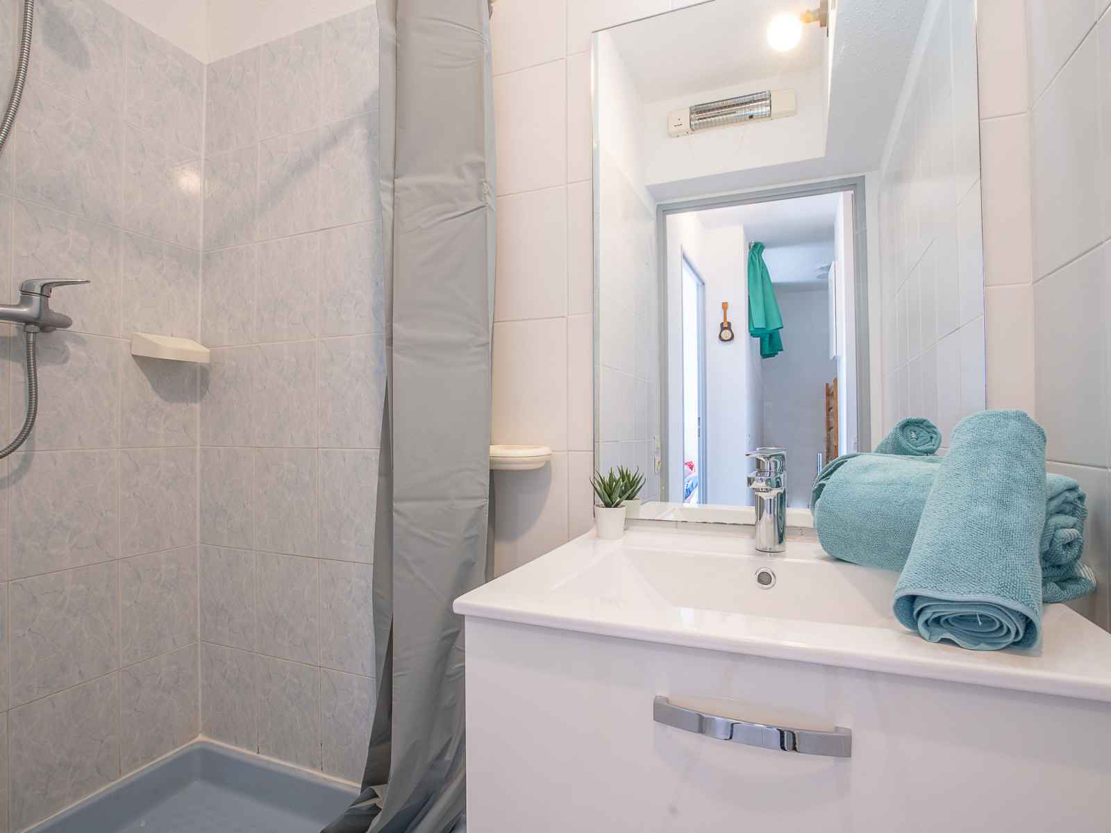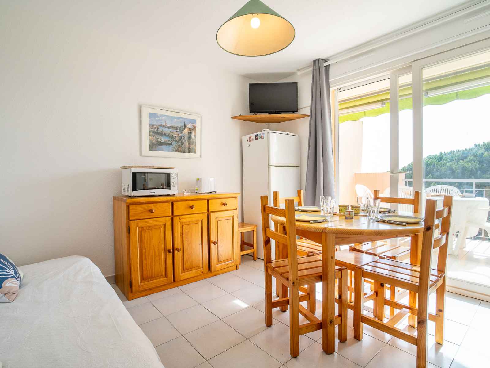 Apt 2 pièces 27 m2 au 3ème étage. séjour/salle à manger avec tv. 1 chambre avec 1 grand-lit (140 cm, longueur 190 cm). cabine avec 1 x 2 lits superposés (80 cm, longueur 190 cm). coin cuisine (2 plaques de cuisson, mini-four, micro-ondes, congélateur). douche, wc séparé. chauffage électrique. terrasse 7 m2, situation nord-ouest. meubles