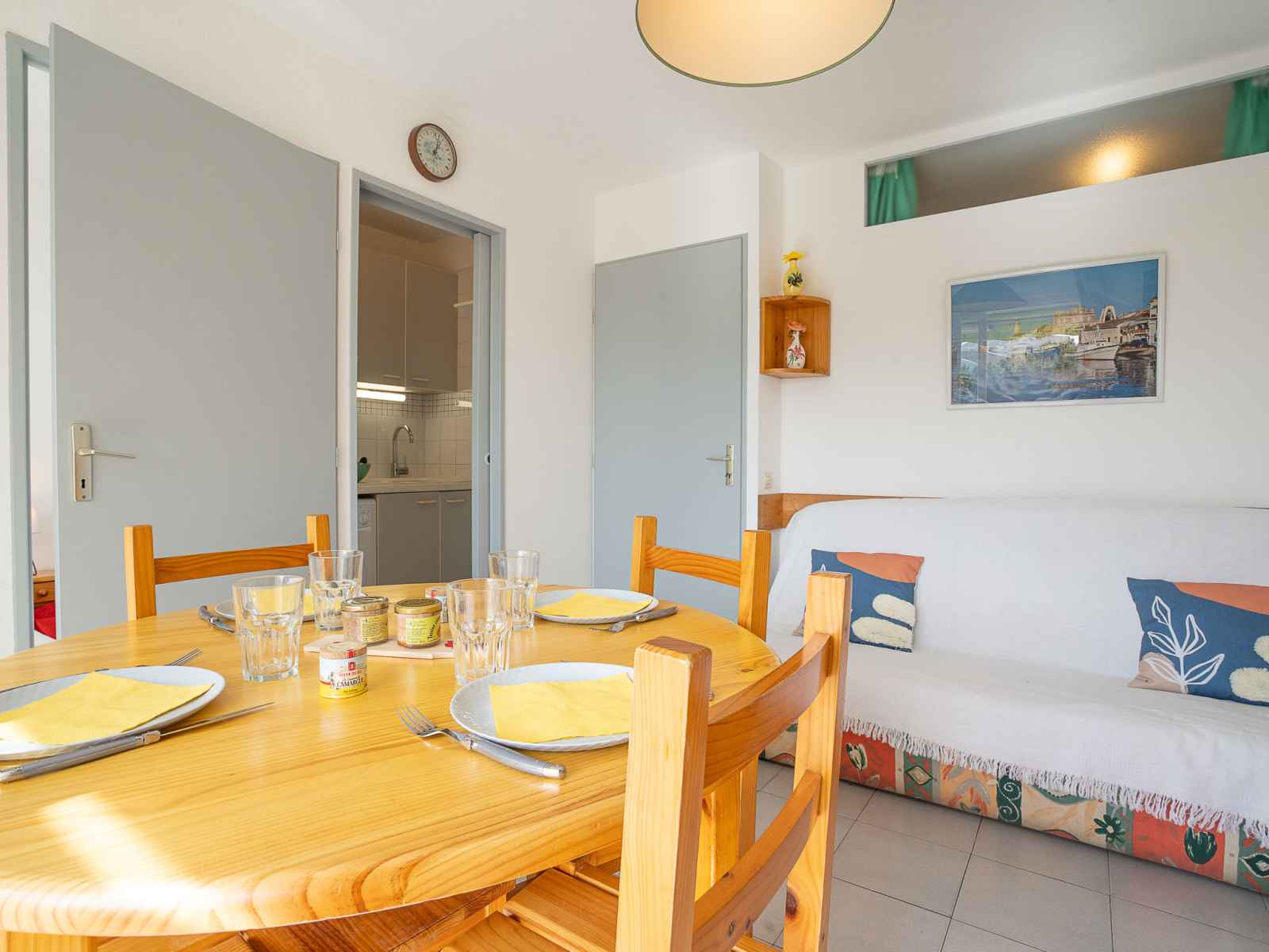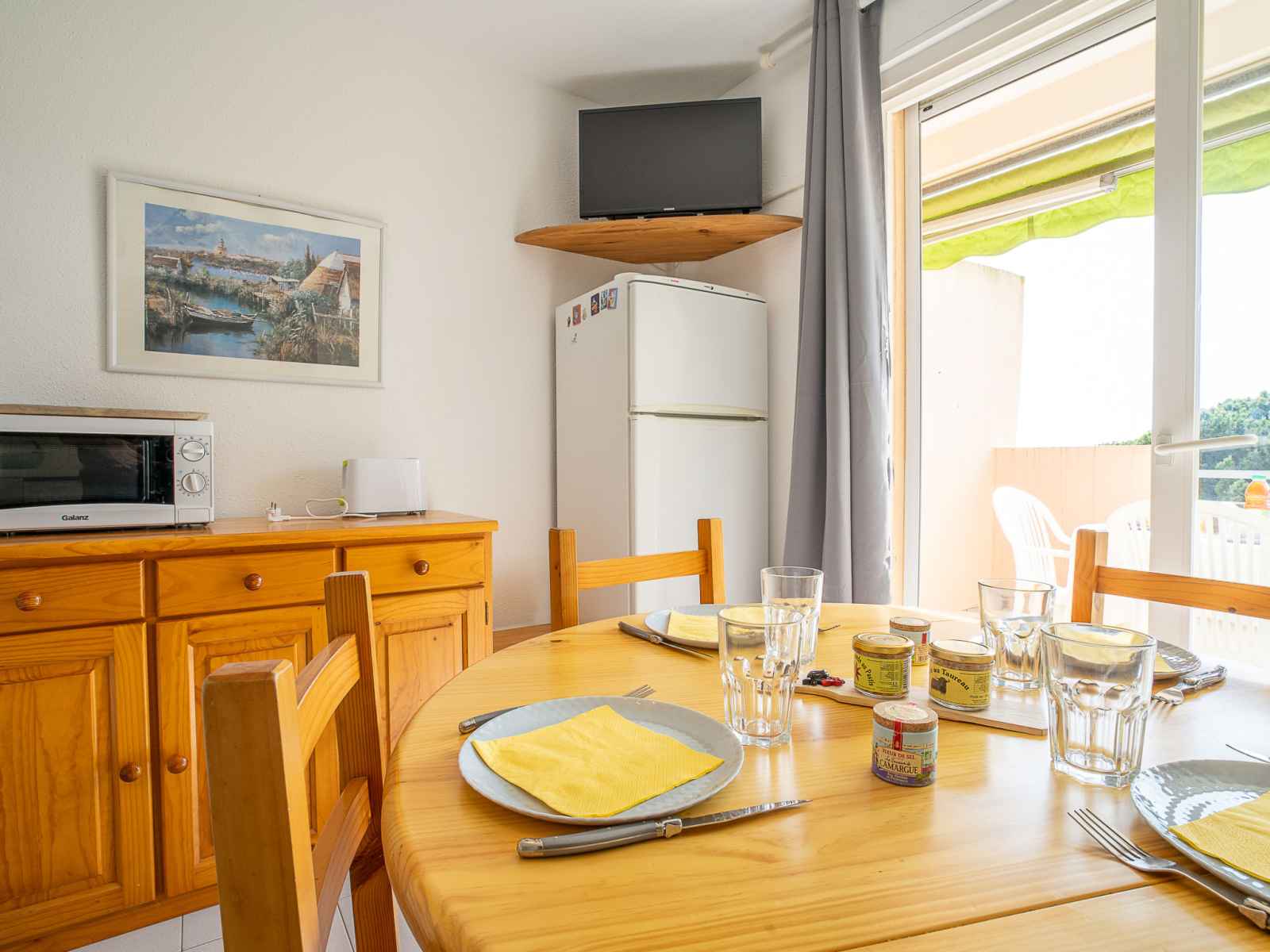 d'alimentation 400 m, supermarché 2.9 km, centre commercial 2.9 km, restaurant 400 m, arrêt de bus "la montjoie" 300 m, gare ferroviaire 3.5 km, plage de sable "sud" 800 m, piscine 2.9 km, centre thermal "thalazur bains de camargue" 3.2 km. port plaisance 400 m, tennis. attractions à proximité: casino flamingo 1.6 km, seaquarium 2.8 km, les arènes du grau du roi 4 km, aigues-mortes 8 km, la grande motte 13 km, nîmes 52 km. région de randonnées: réserve naturelle de camargue. veuillez noter: voiture recommandée. aéroport 24 km de la maison. en saison, animations sonores le soir dans le camping situé à 200 m.