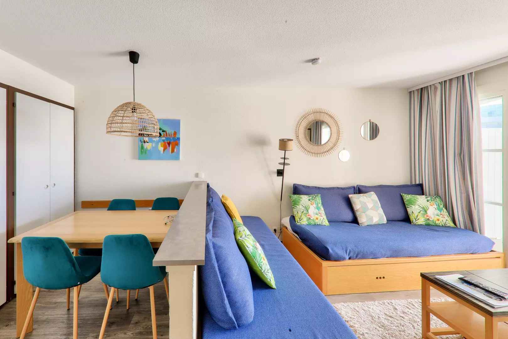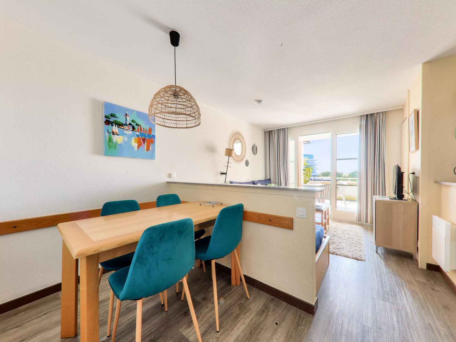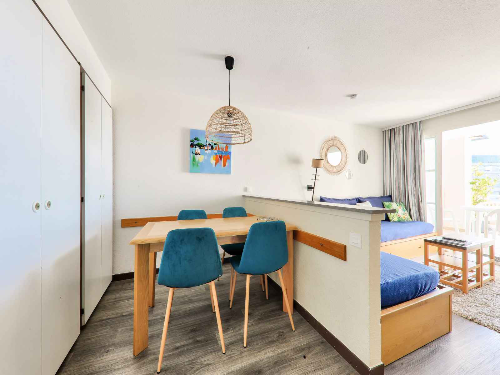 Votre location de vacances comporte : 1 séjour, 1 cuisine, 1 chambre, 1 salle de bain, 1 wc, 1 terrasse couverte, 1 place de parking en extérieur.